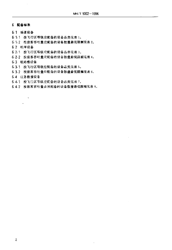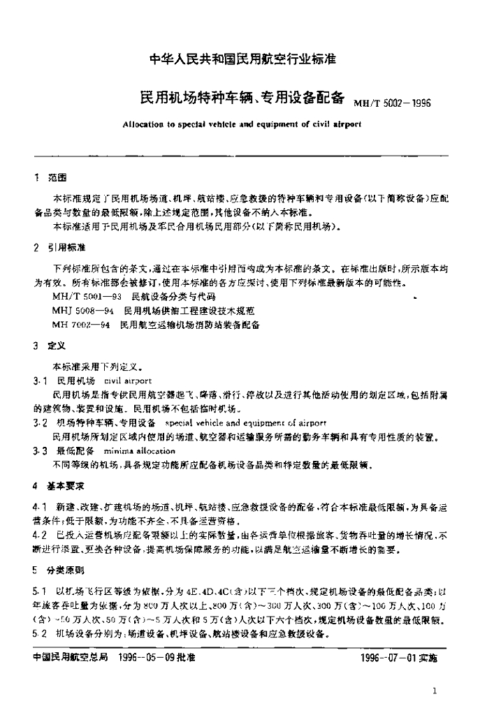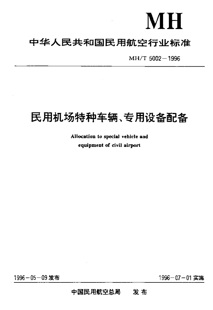 MH/T 5002-1996 民用机场特种车辆、专用设备配备 含2015年 第一修订案
