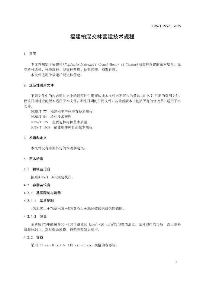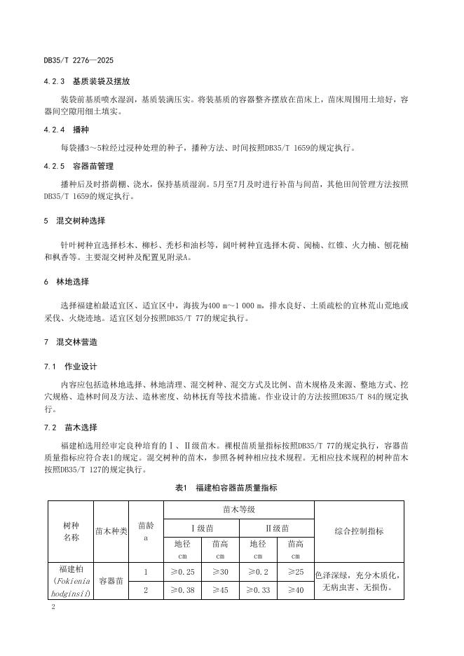 DB35/T 2276-2025 福建柏混交林营建技术规程