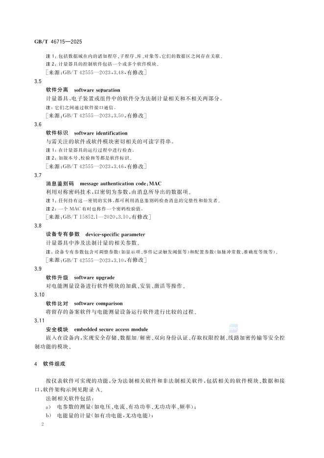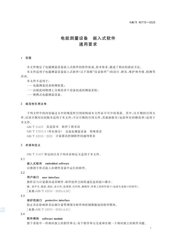 GB/T 46715-2025 电能测量设备 嵌入式软件 通用要求