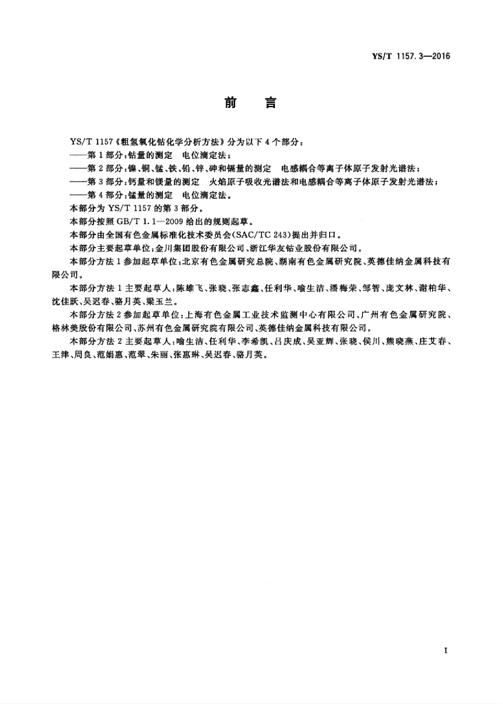 YS/T 1157.3-2016 粗氢氧化钴化学分析方法 第3部分:钙量和镁量的测定 火焰原子吸收光谱法和电感耦合等离子体原子发射光谱法