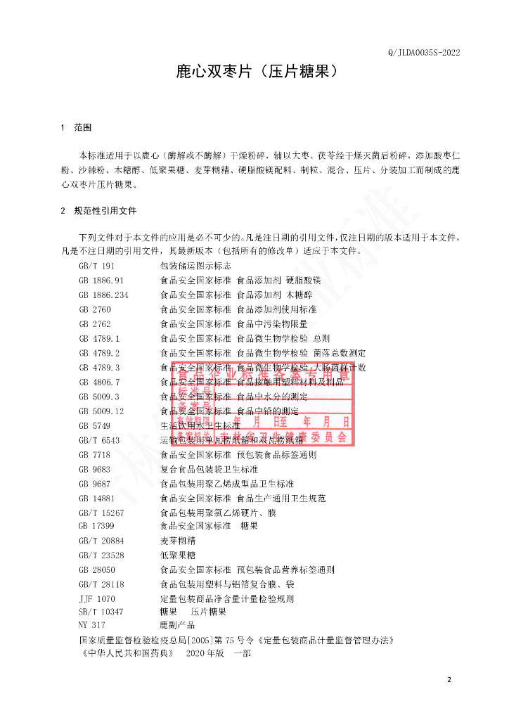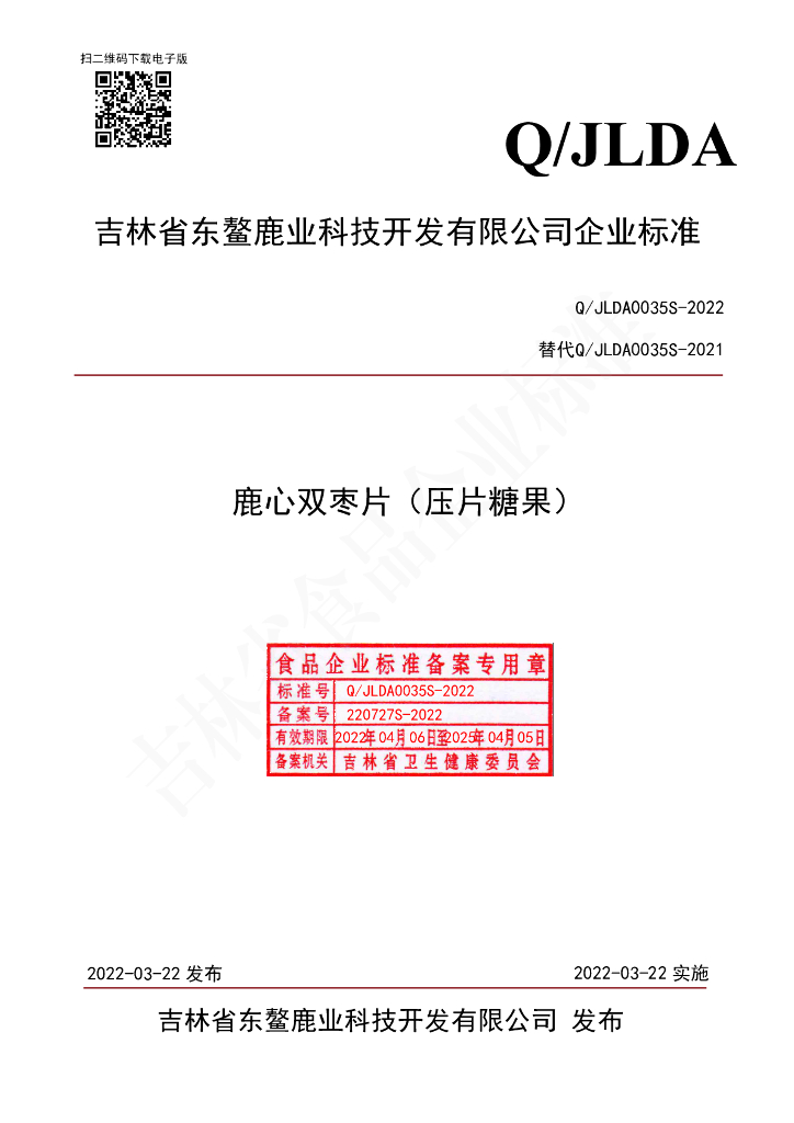 Q/JLDA 0035S-2022 鹿心双枣片(压片糖果)