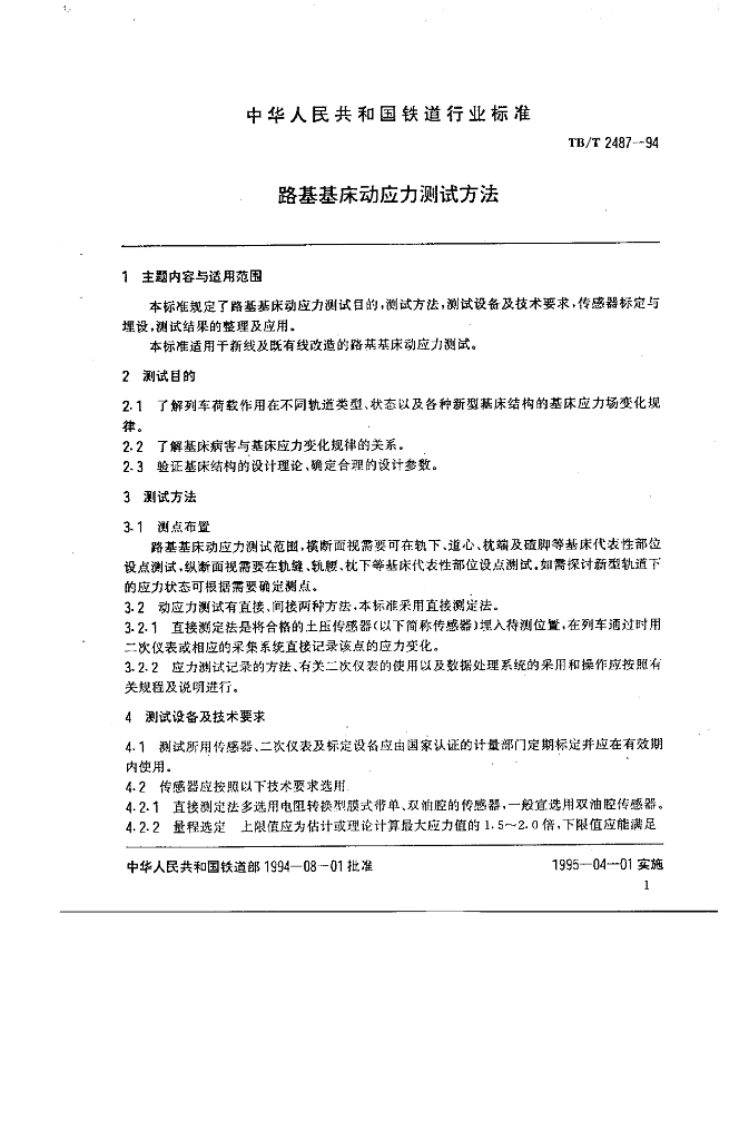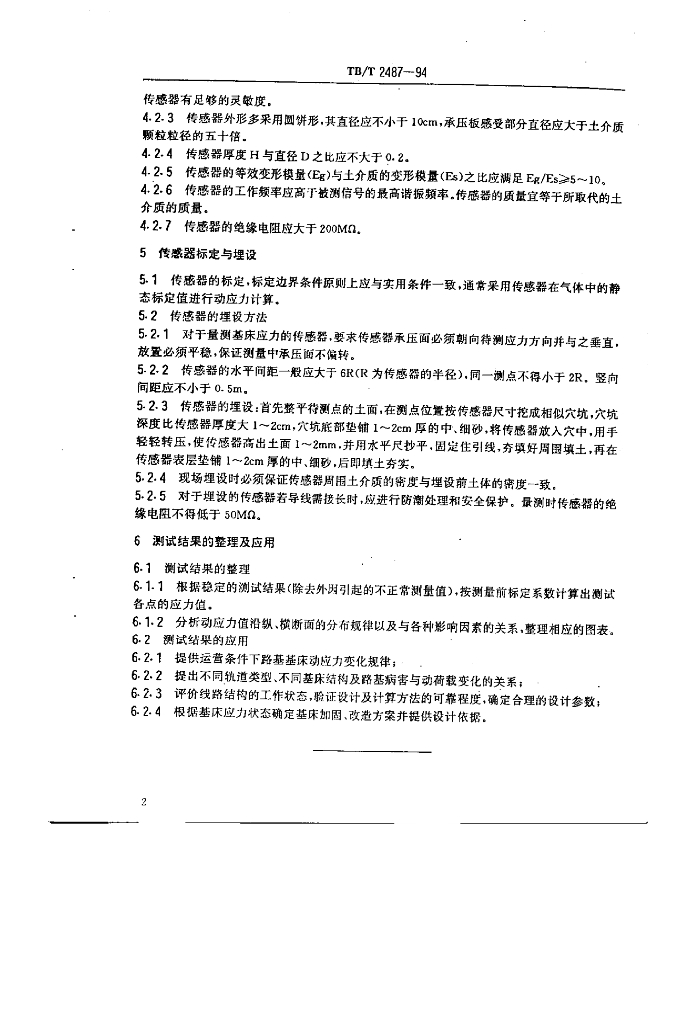 TB/T 2487-1994 路基基床动应力测试方法