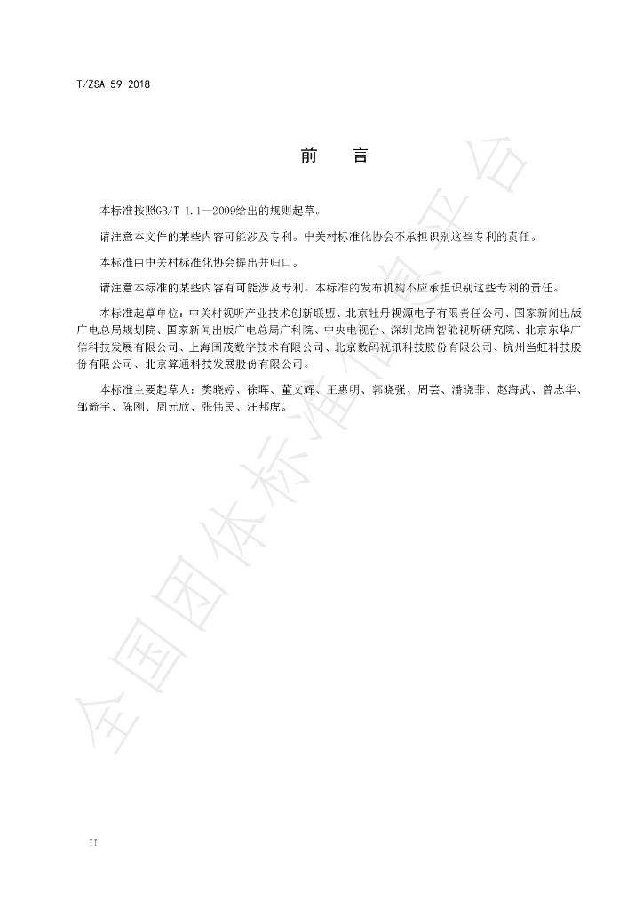 中关村视听产业技术创新联盟、北京牡丹视源电子有限责任公司、国家新闻出版 广电总局规划院、国家新闻出版广电总局广科院、中央电视台、深圳龙岗智能视听研究院、北京东华广 信科技发展有限公司、上海国茂数字技术有限公司、北京数码视讯科技股份有限公司、杭州当虹科技股 份有限公司、北京算通科技发展股份有限公司