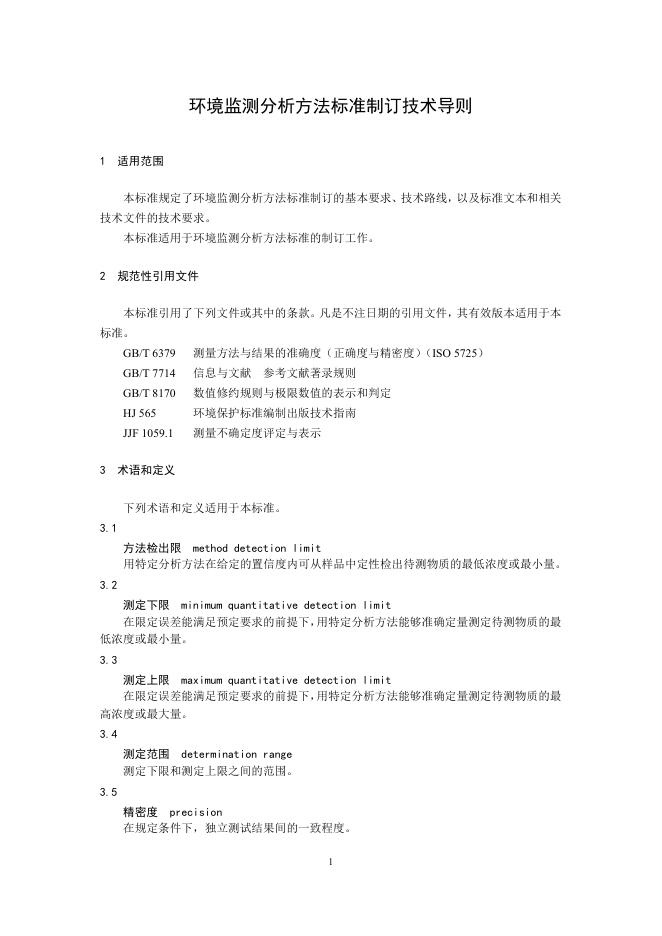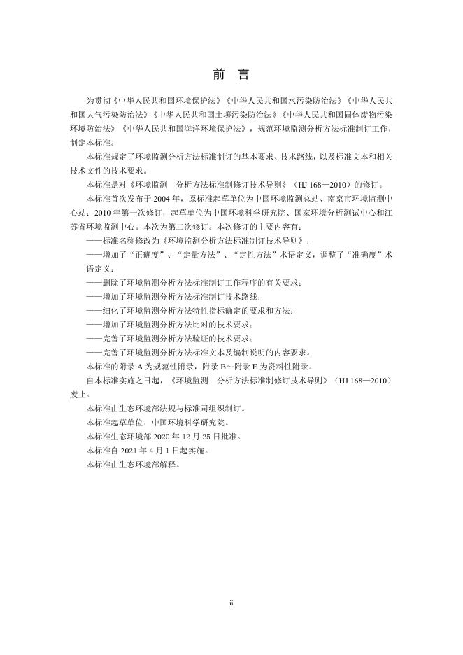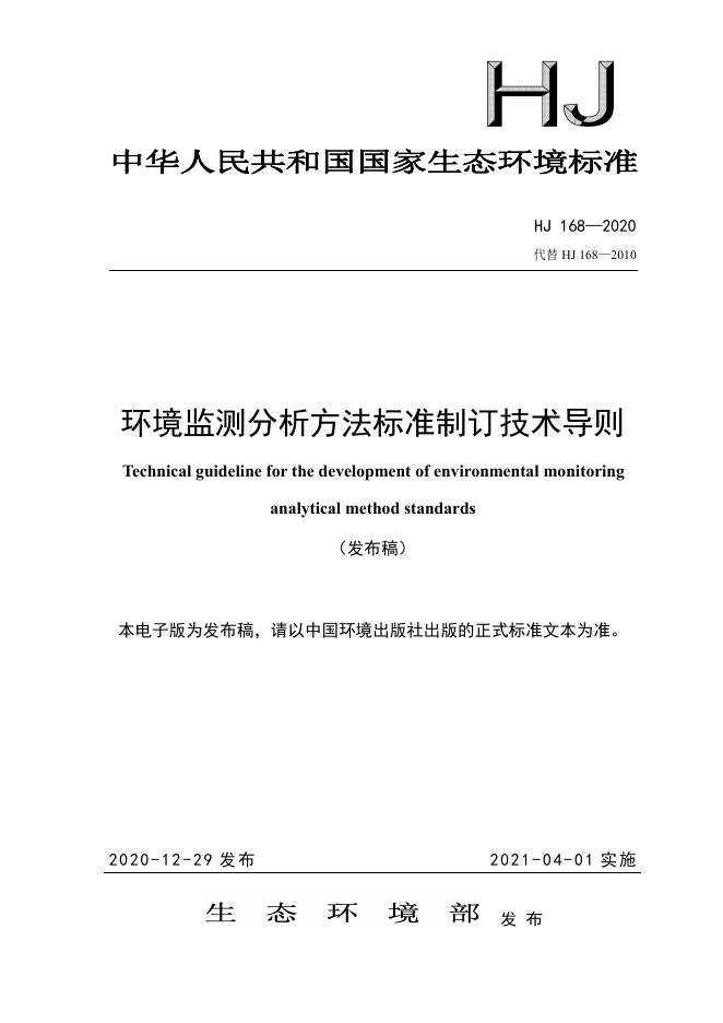 HJ 168-2020 环境监测分析方法标准制订技术导则