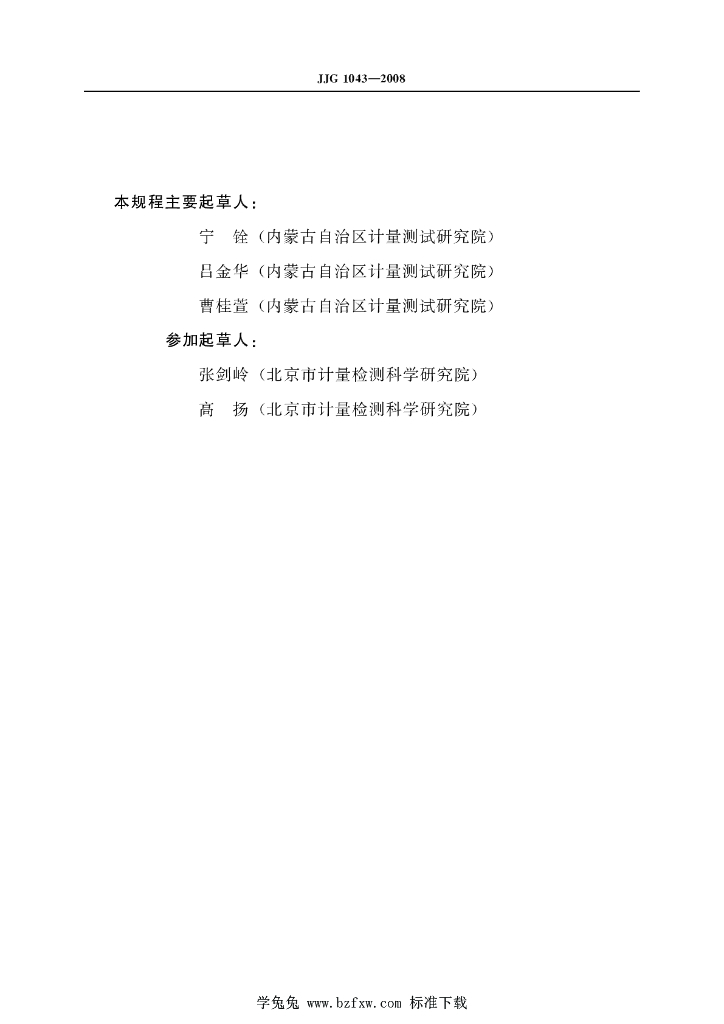 宁铨(内蒙古自治区计量测试研究院)、吕金华(内蒙古自治区计量测试研究院)、曹桂萱(内蒙古自治区计量测试研究院)、张剑岭(北京市计量检测科学研究院)、高扬(北京市计量检测科学研究院)