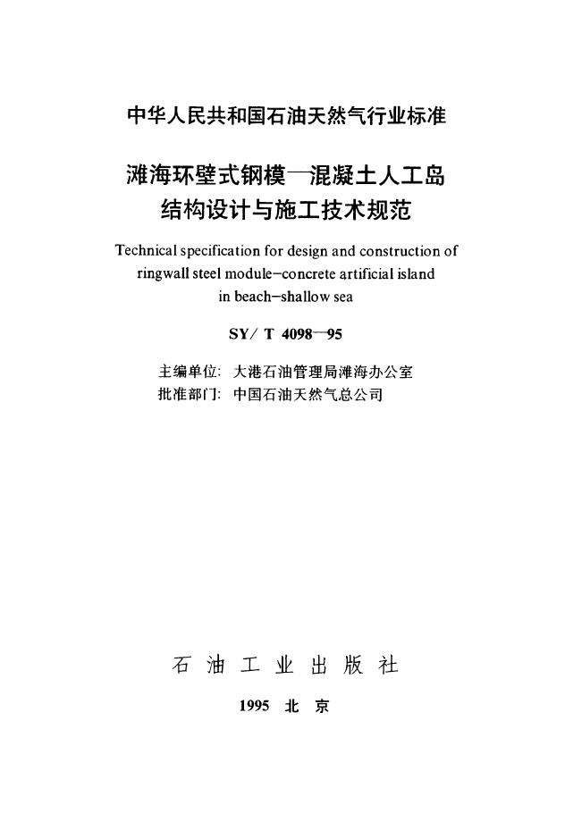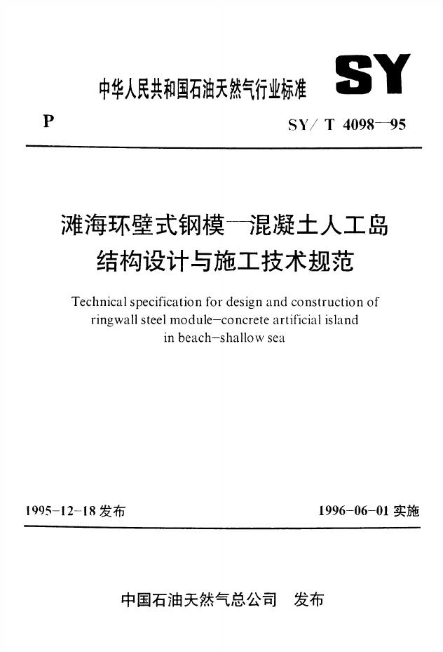 SY/T 4098-1995 滩海环壁式钢模—混凝土人工岛结构设计与施工技术规范