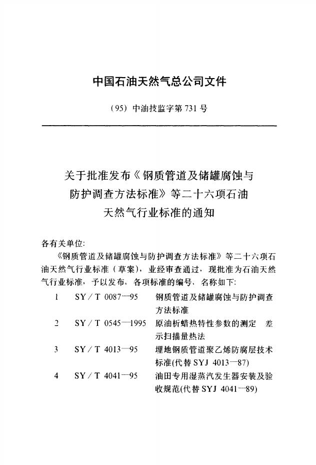 SY/T 0315-1997 钢质管道熔结环氧粉末外涂层技术标准
