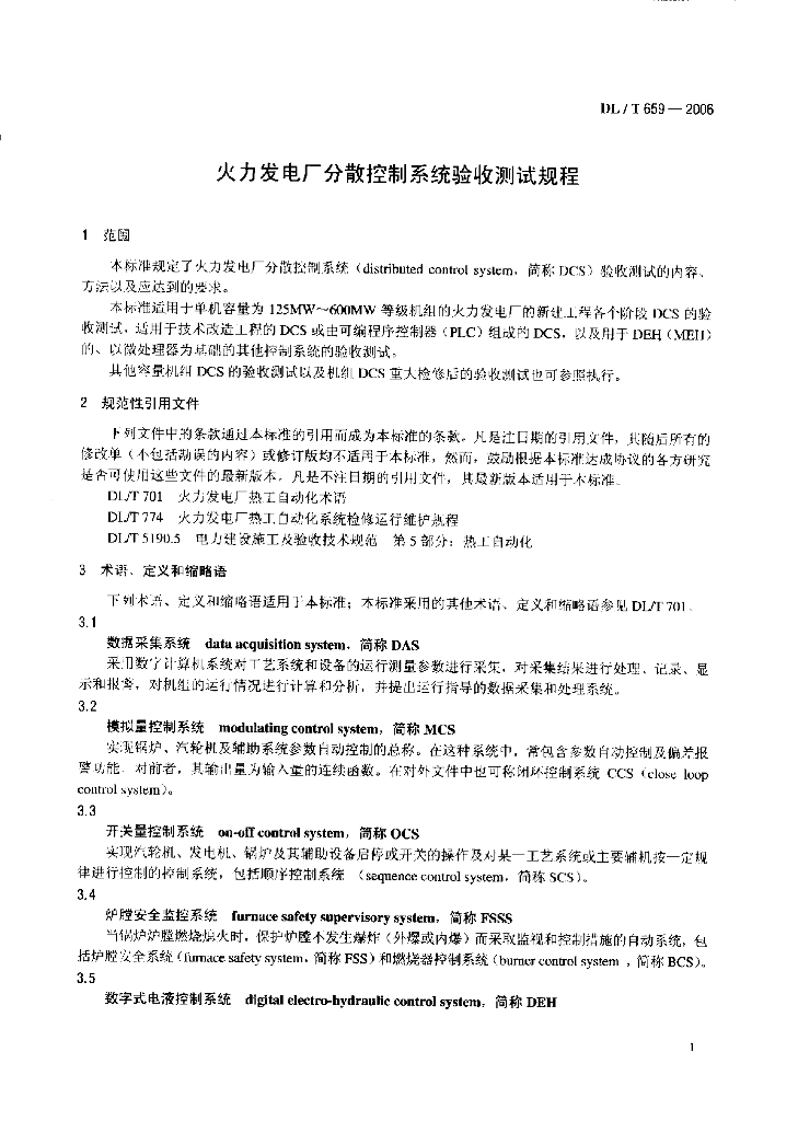 DL/T 659-2006 火力发电厂分散控制系统验收测试规程