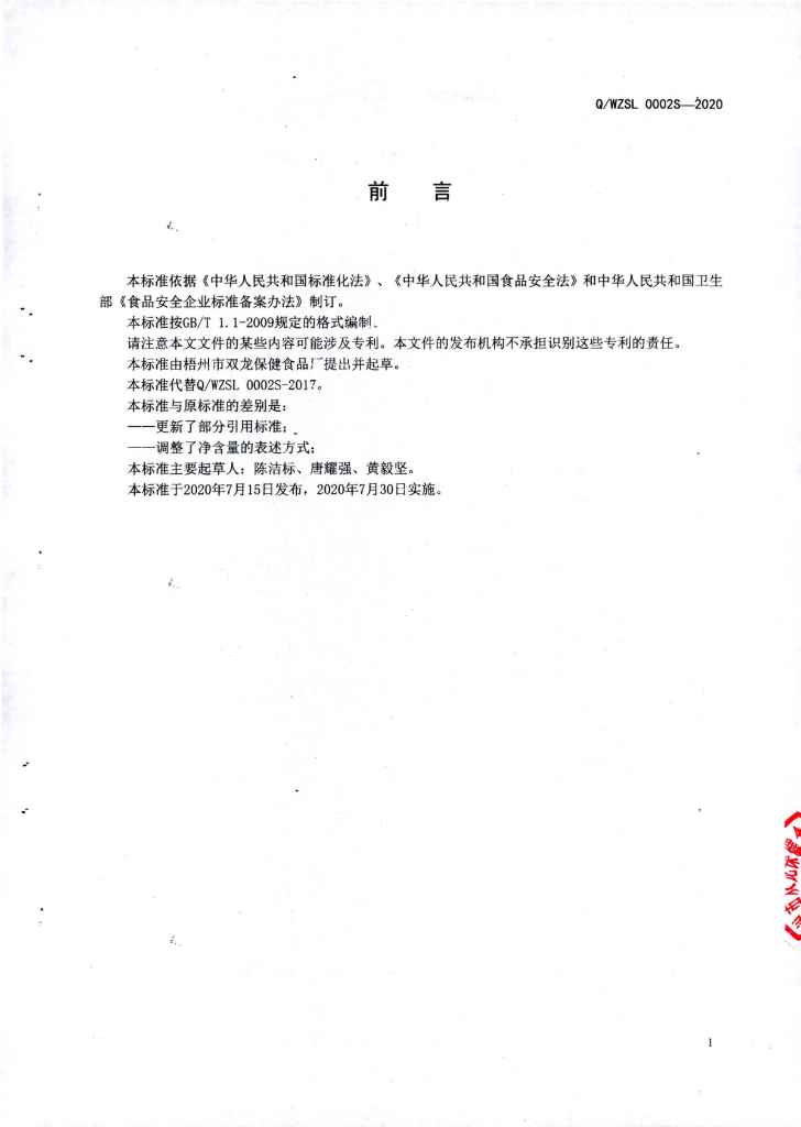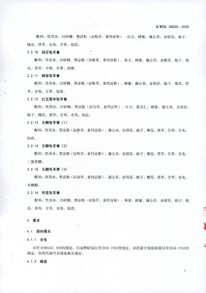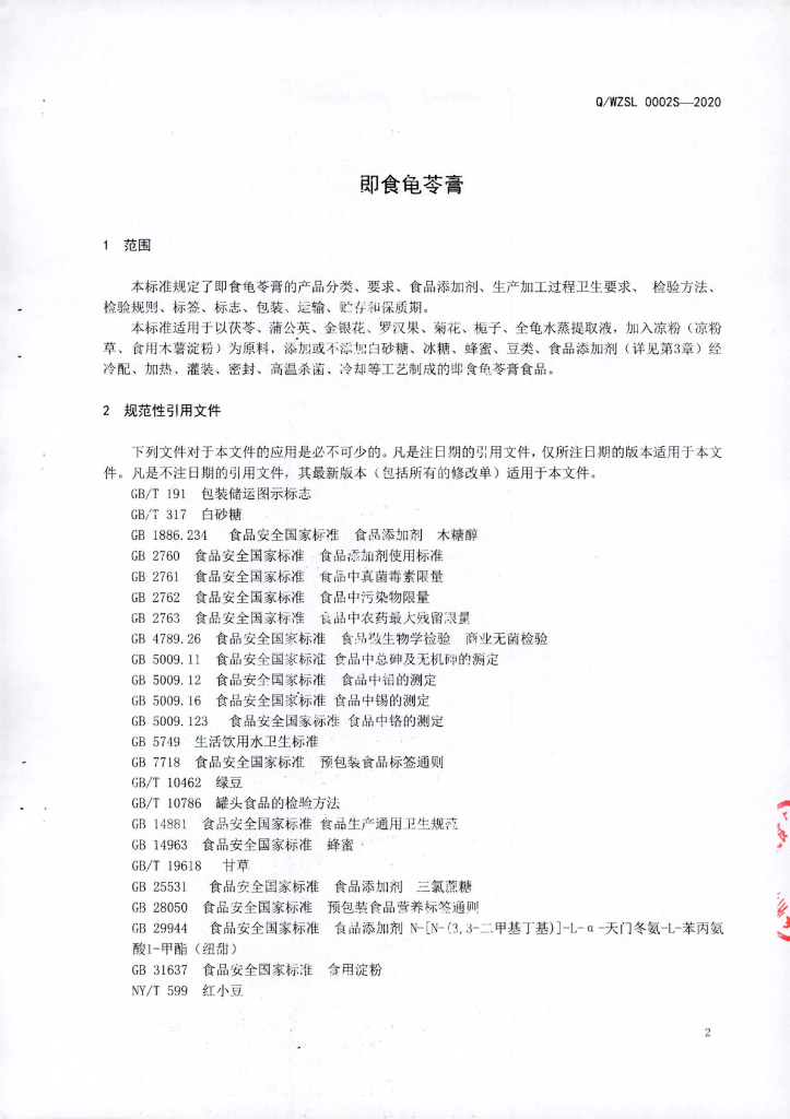 Q/WZSL 0002S-2020 即食龟苓膏