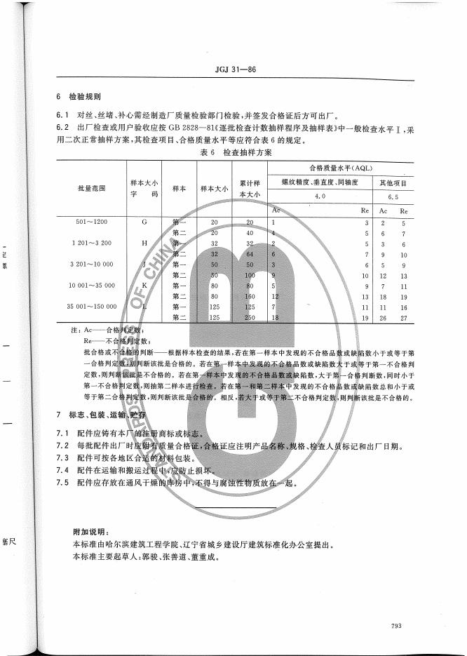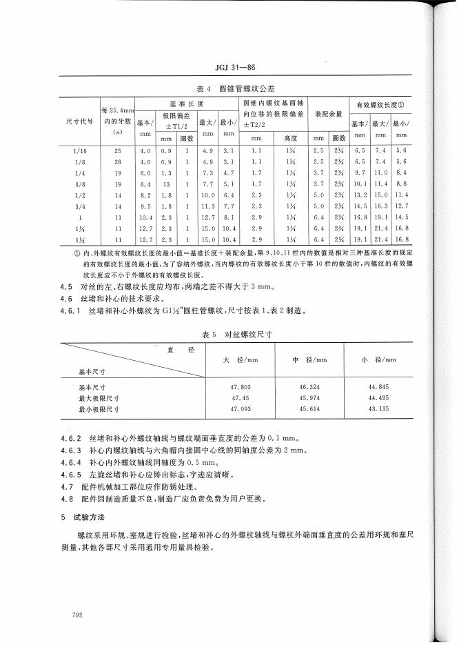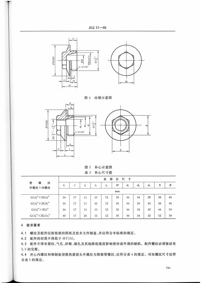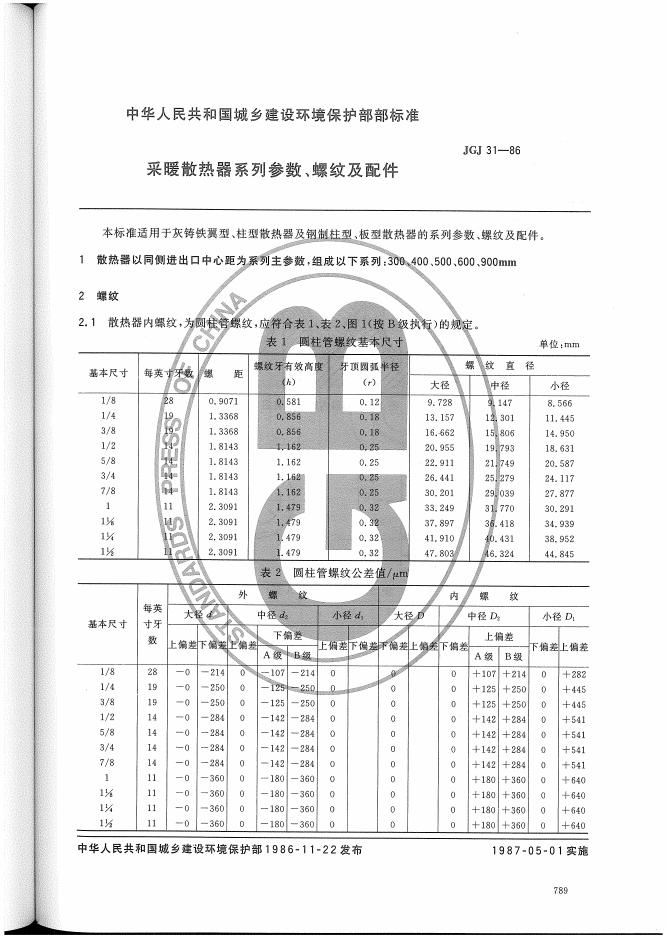 JGJ 31-1986 采暖散热器系列系数、螺纹及配件