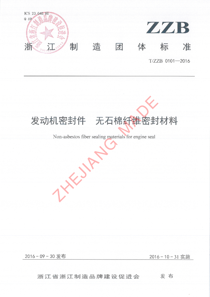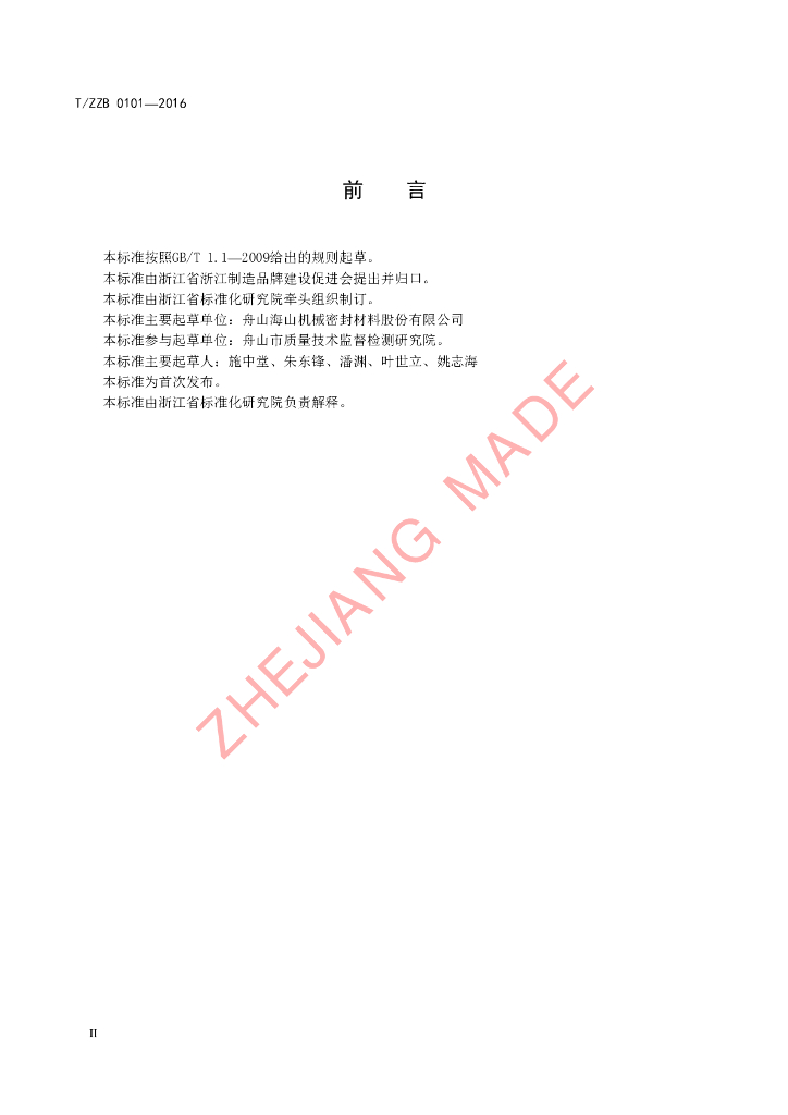 本标准由浙江省标准化研究院牵头组织制订。、本标准主要起草单位:舟山海山机械密封材料股份有限公司。、本标准参与起草单位:舟山市质量技术监督检测研究院。