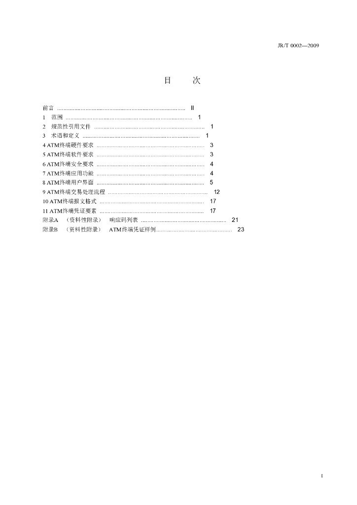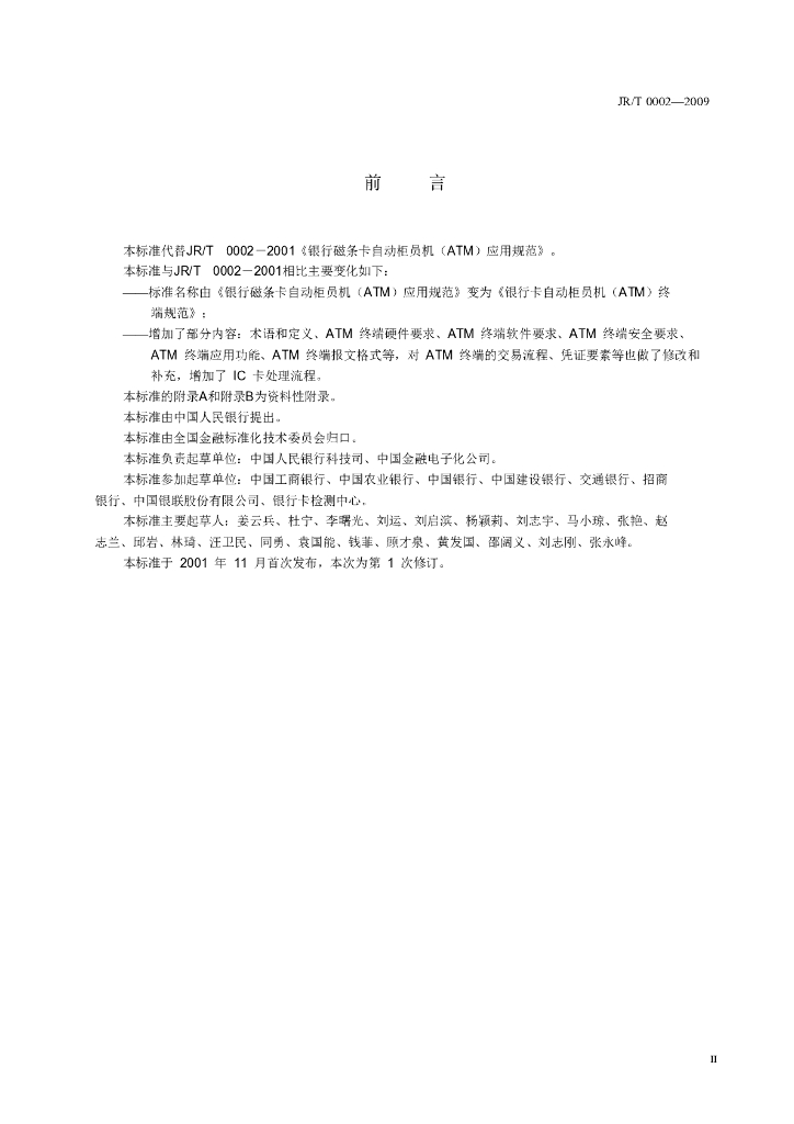 JR/T 0002-2009 银行磁条卡自动柜员机(ATM)终端规范