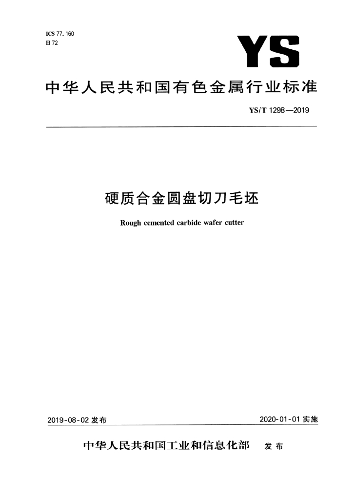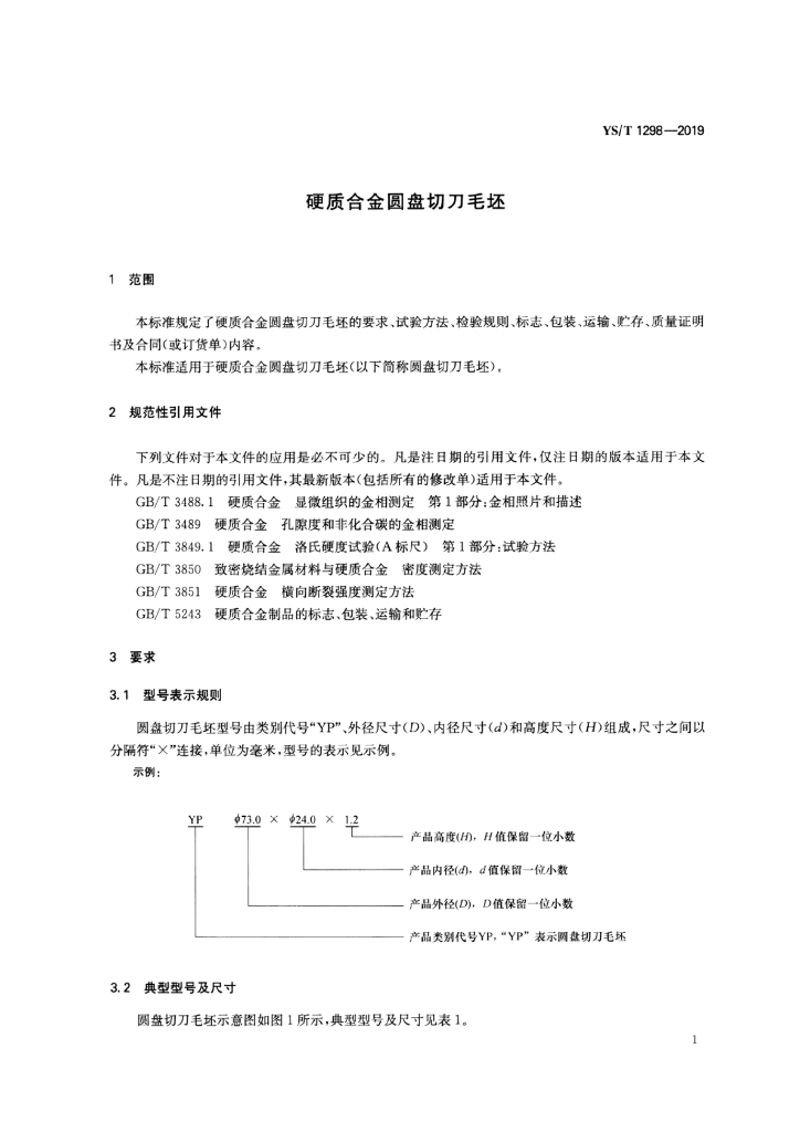 YS/T 1298-2019 硬质合金圆盘切刀毛坯