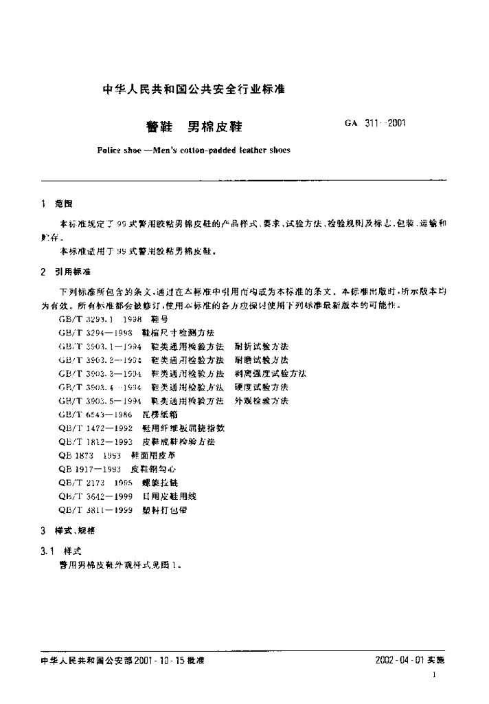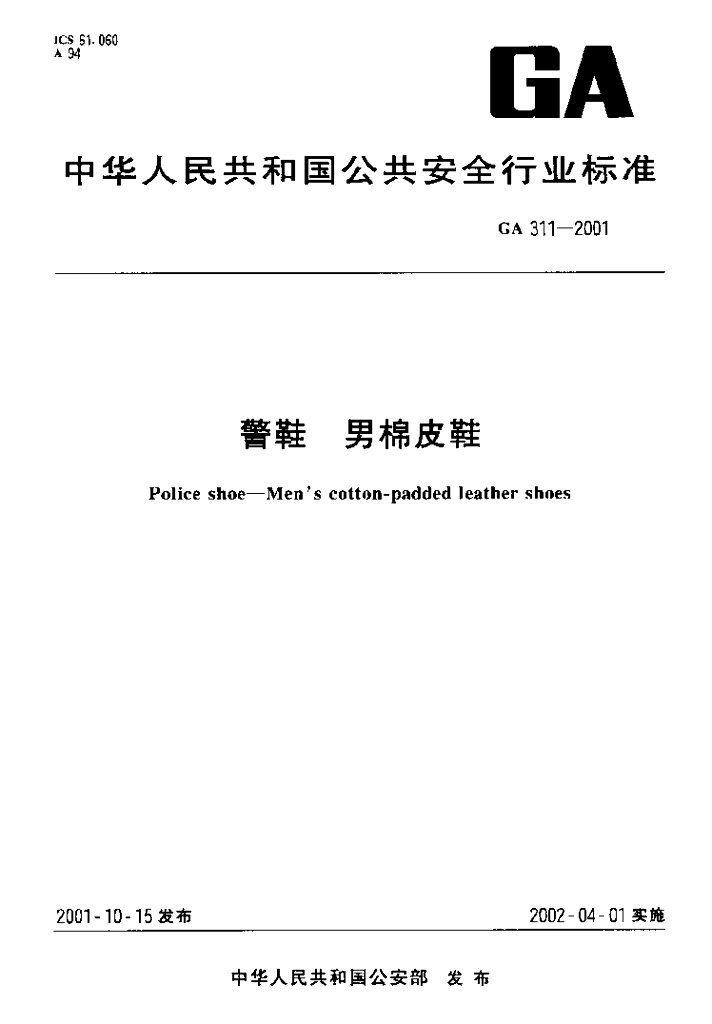GA 311-2001 警鞋 男棉皮鞋