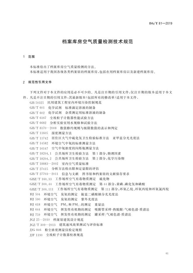 DA/T 81-2019 档案库房空气质量检测技术规范