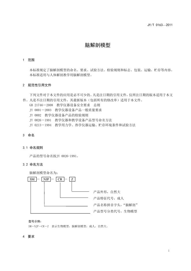 JY/T 0163-2011 脑解剖模型
