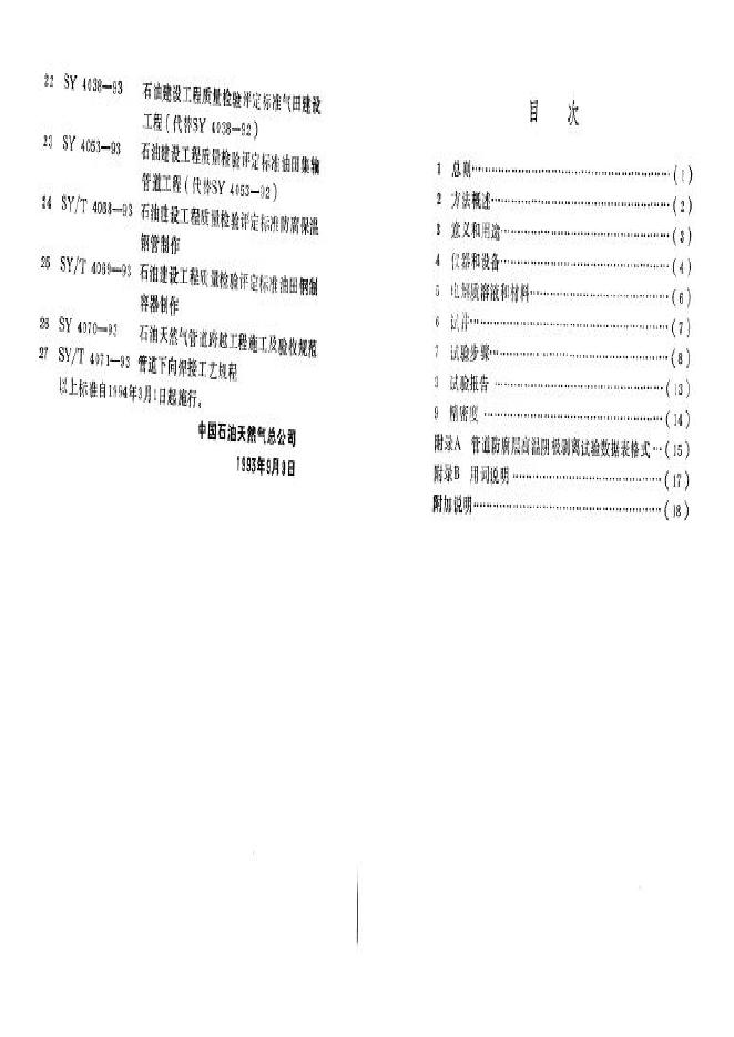 SY 0072-1993 管道防腐层高温阴极剥离试验方法标准