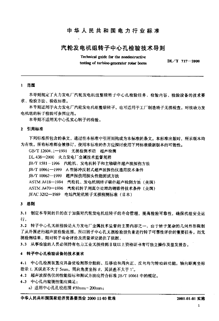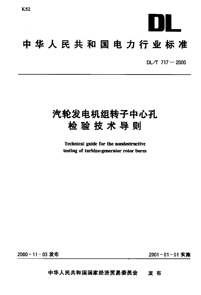 DL/T 717-2000 汽轮发电机组转子中心孔检验技术导则