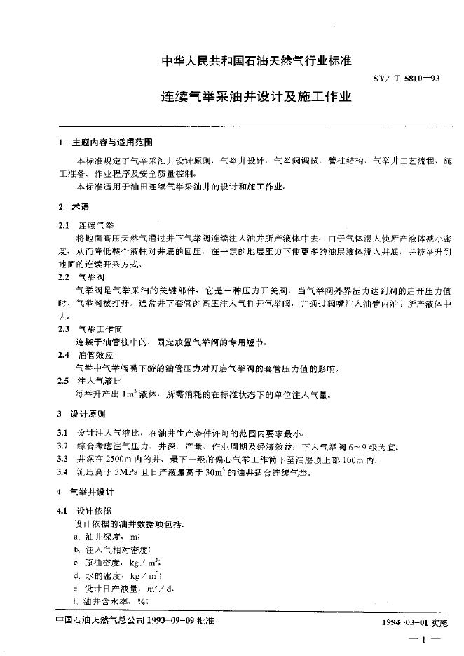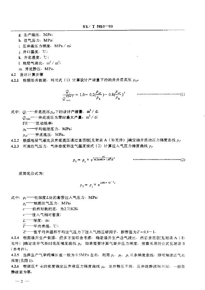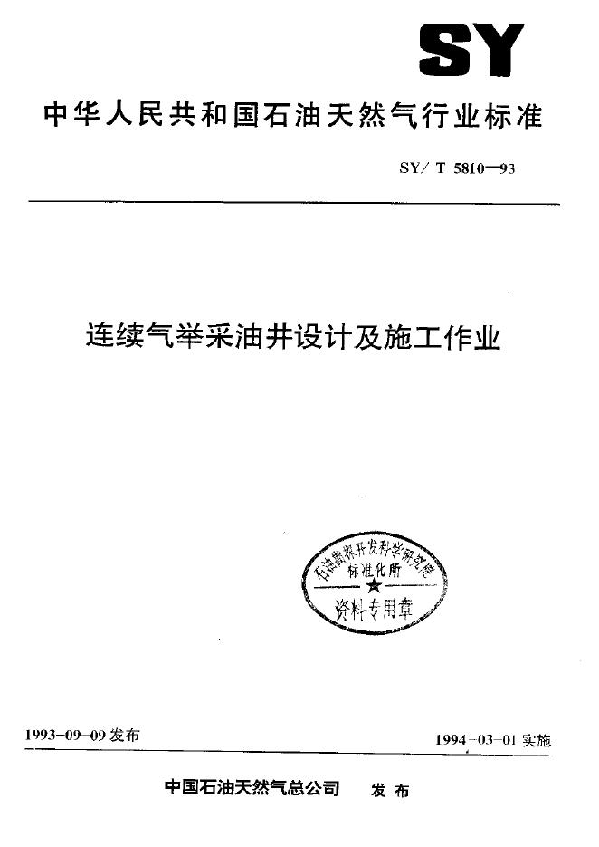SY/T 5810-1993 连续气举采油井设计及施工作业