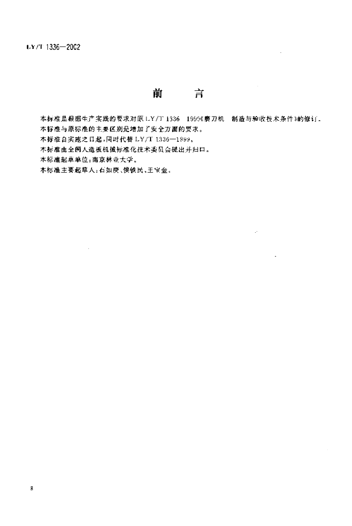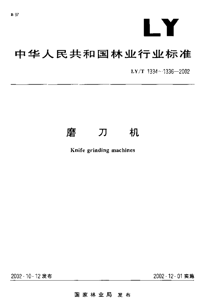 LY/T 1336-2002 磨刀机 制造与验收技术条件