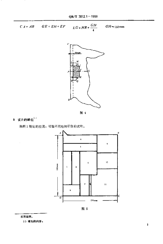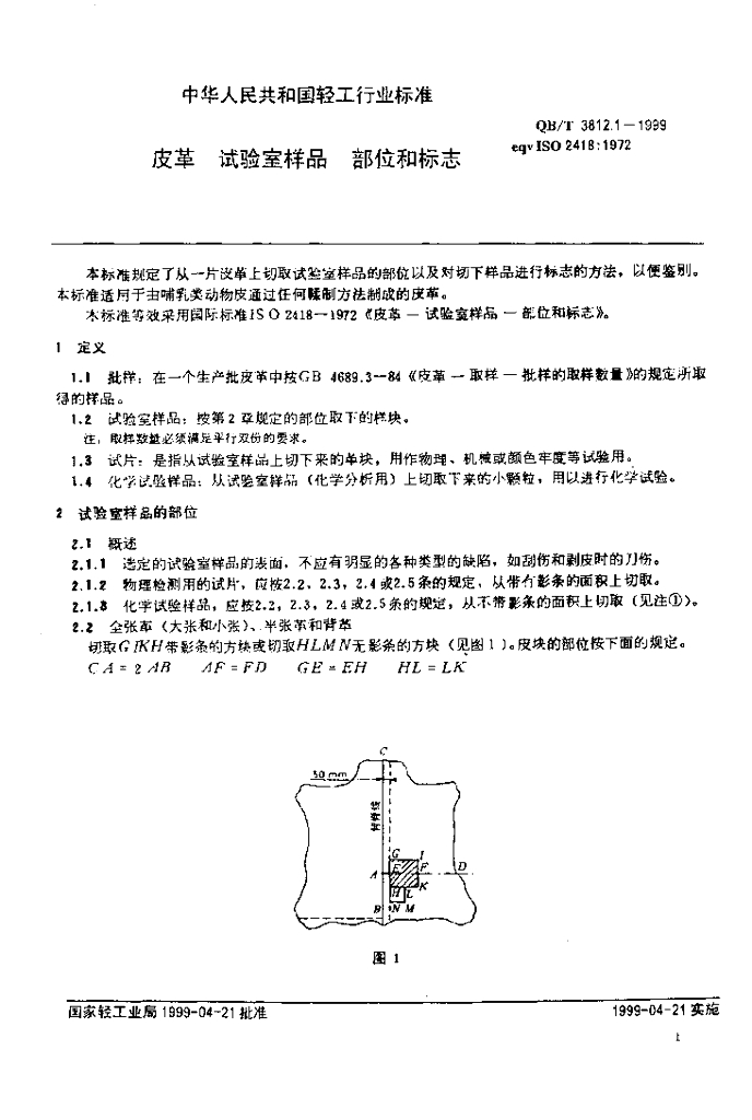 QB/T 3812.1-1999 皮革试验室样品部位和标志