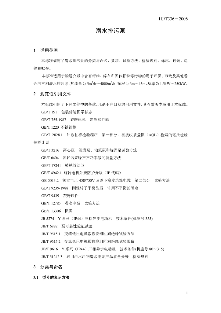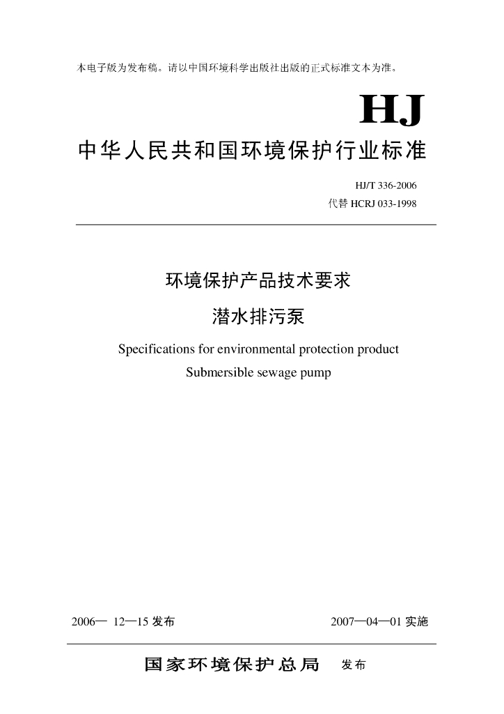 HJ/T 336-2006 环境保护产品技术要求 潜水排污泵