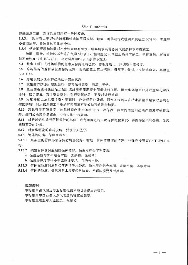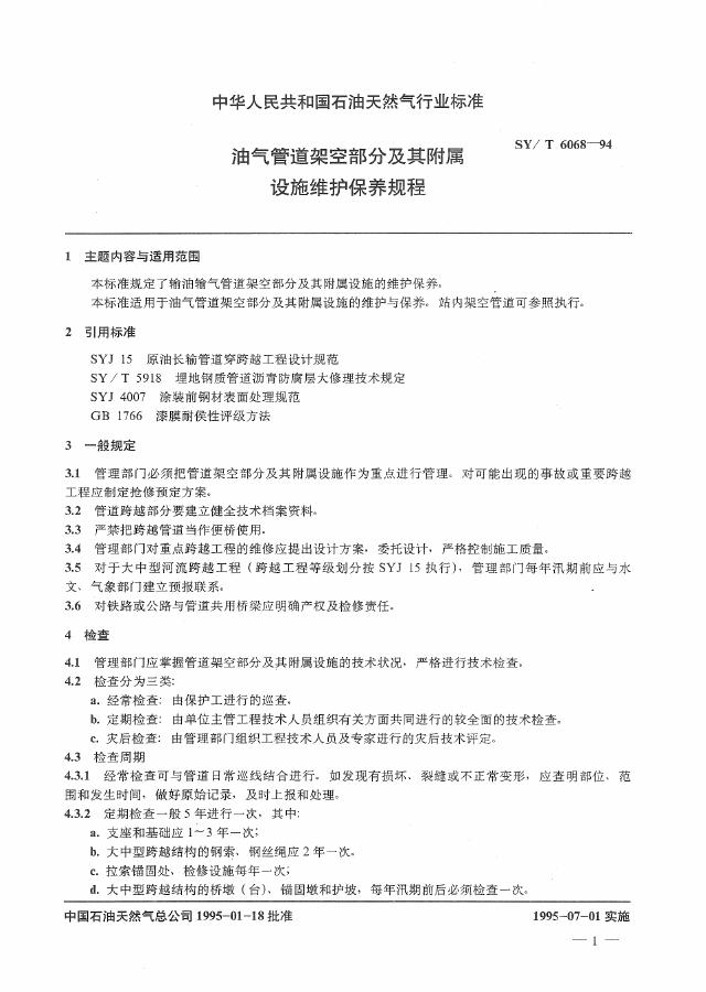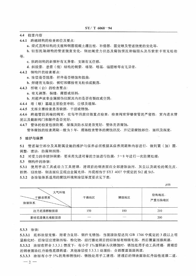SY/T 6068-1994 油气管道架空部分及其附属设施维护保养规程