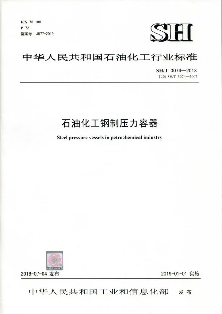 SH/T 3074-2018 石油化工钢制压力容器