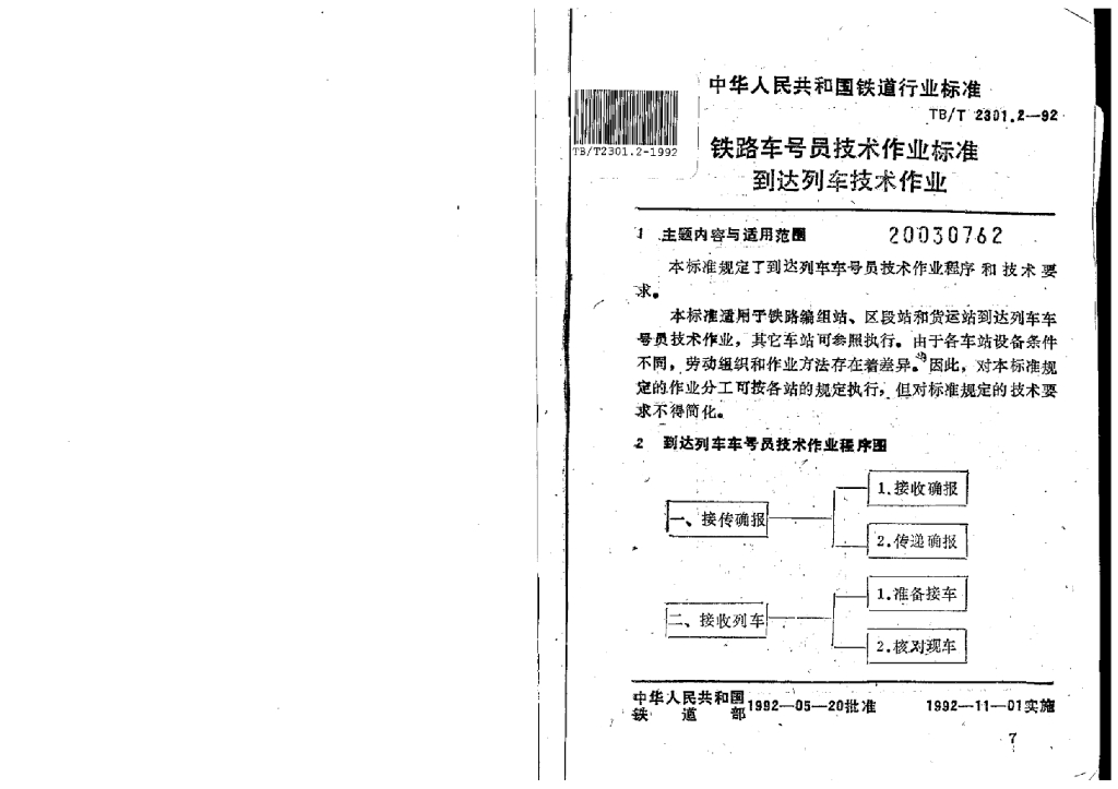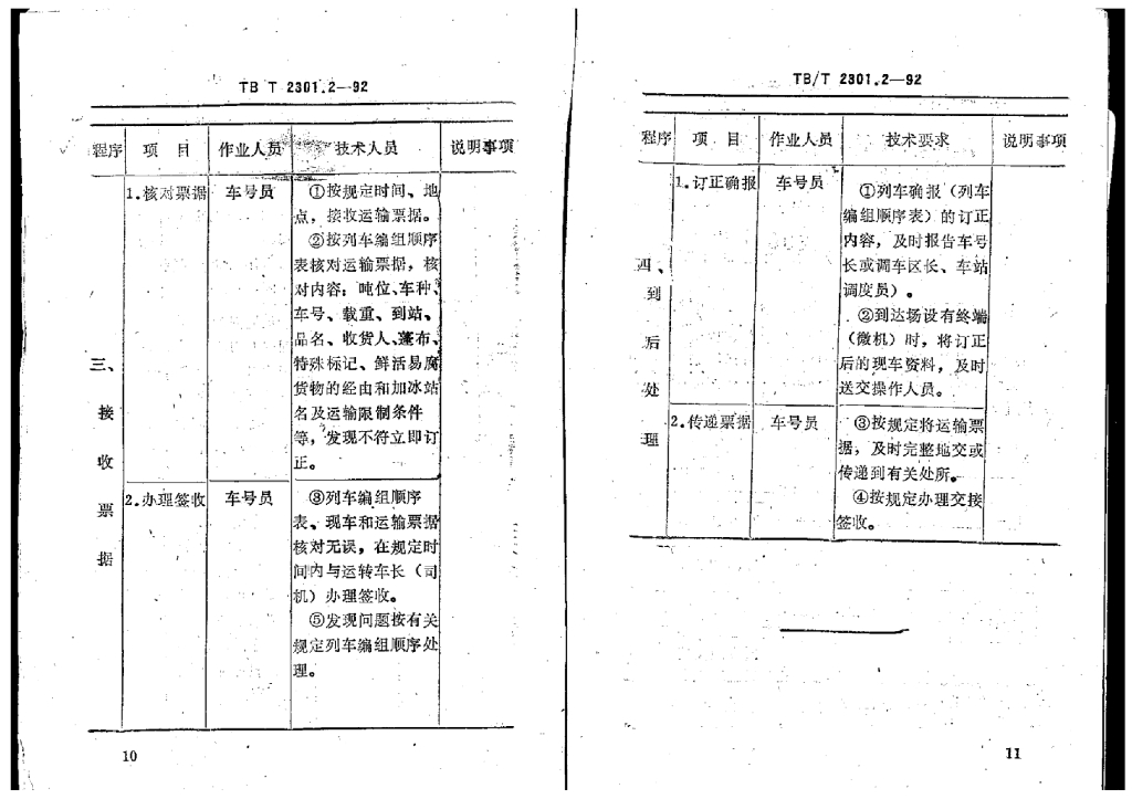 TB/T 2301.2-1992 铁路车号员技术作业标准到达列车技术作业