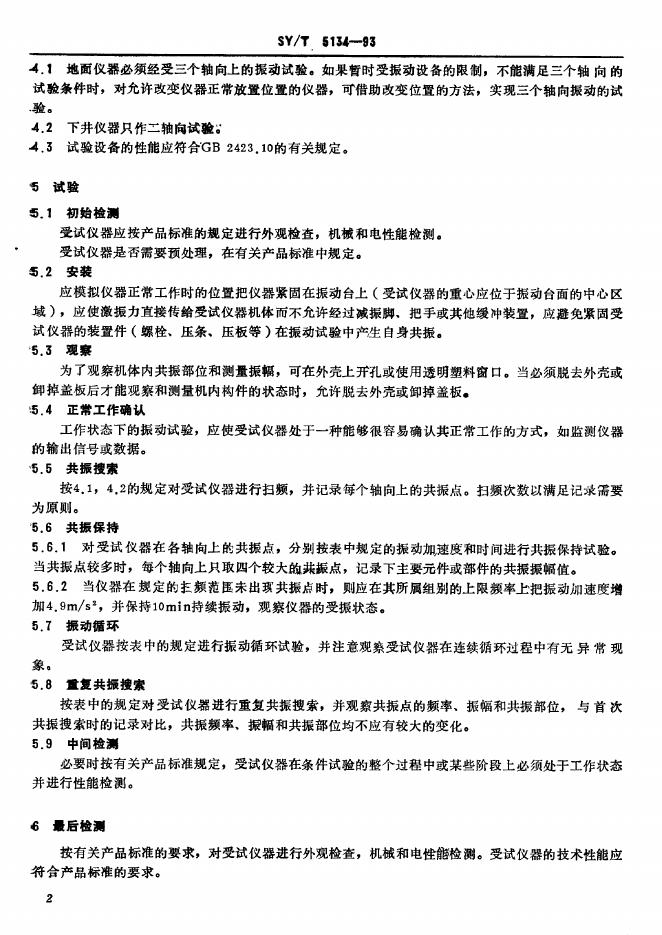SY/T 5134-1993 石油勘探开发仪器基本环境试验方法 试验G:振动