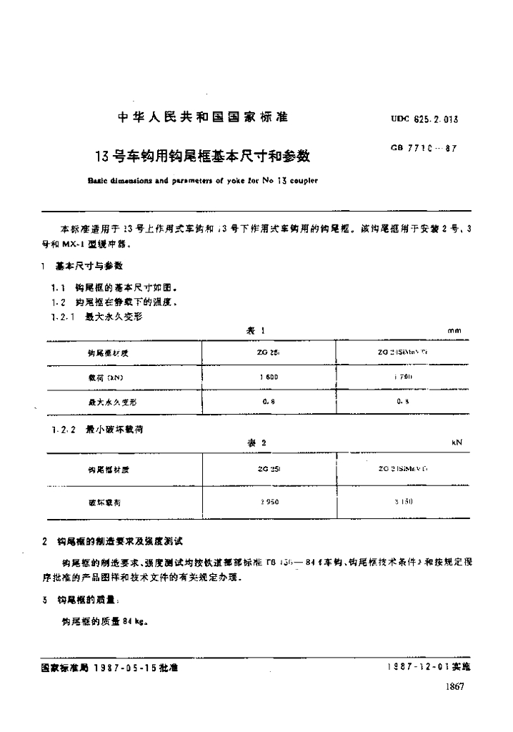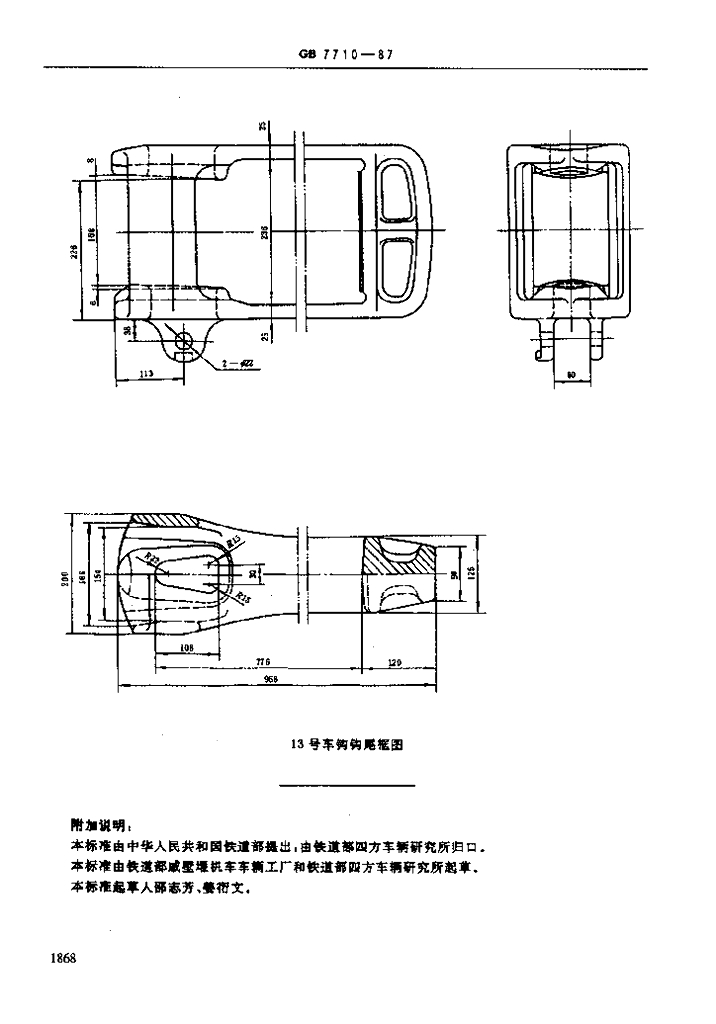 TB/T 3045-2002 13号车钩用钩尾框基本尺寸和参数