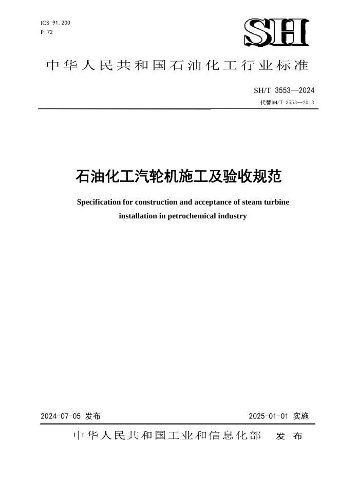 SH/T 3553-2024 石油化工汽轮机施工及验收规范