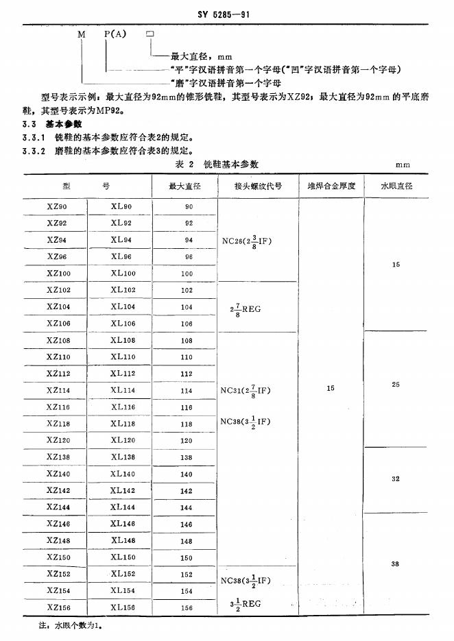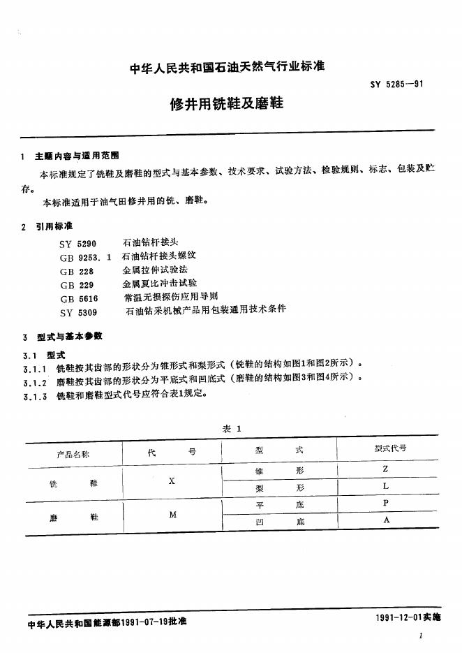 SY 5285-1991 修井用铣鞋及磨鞋