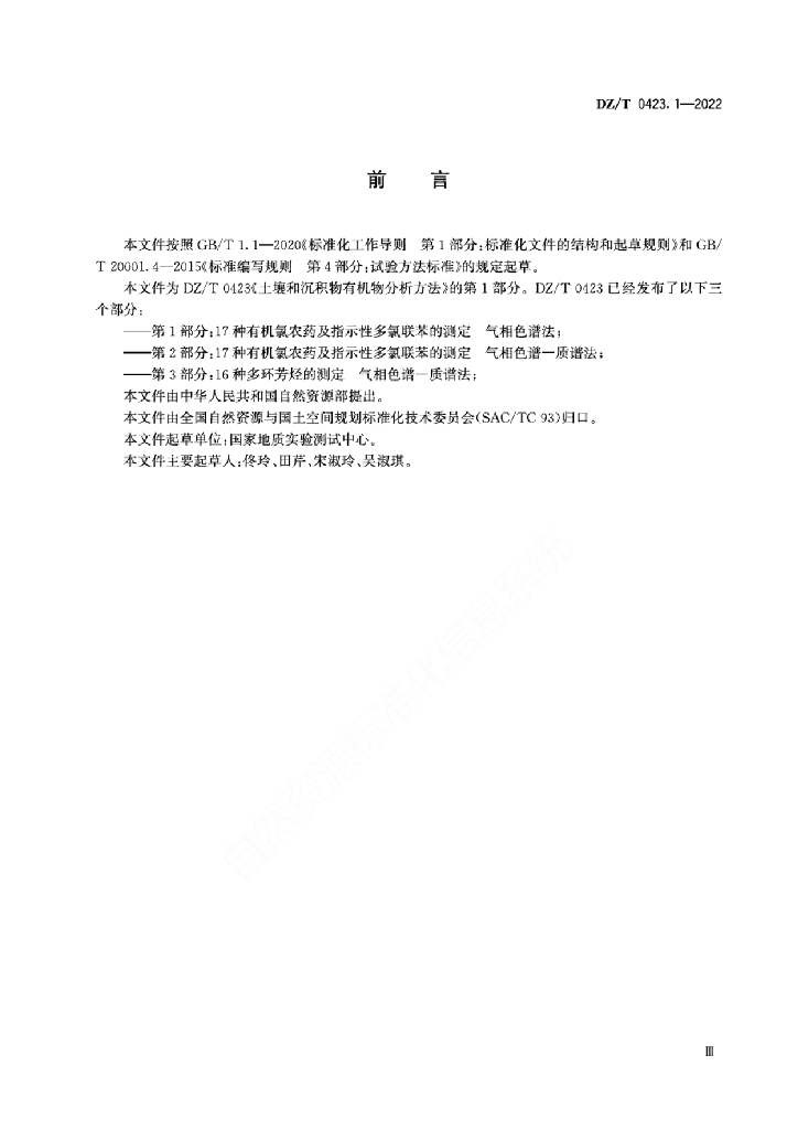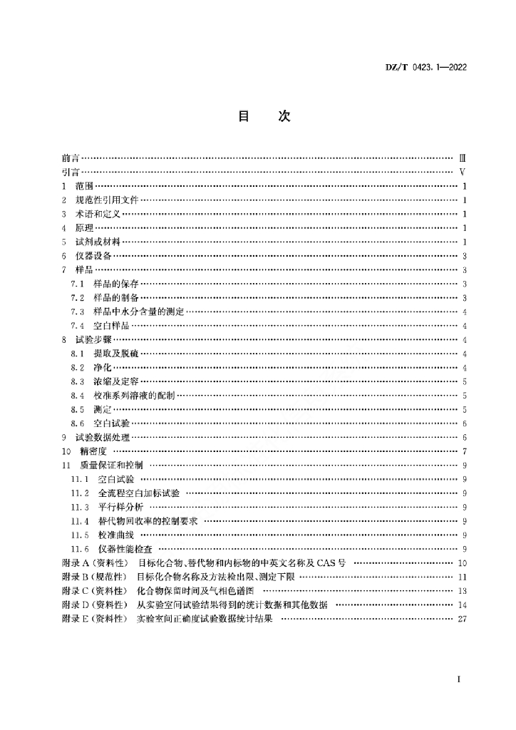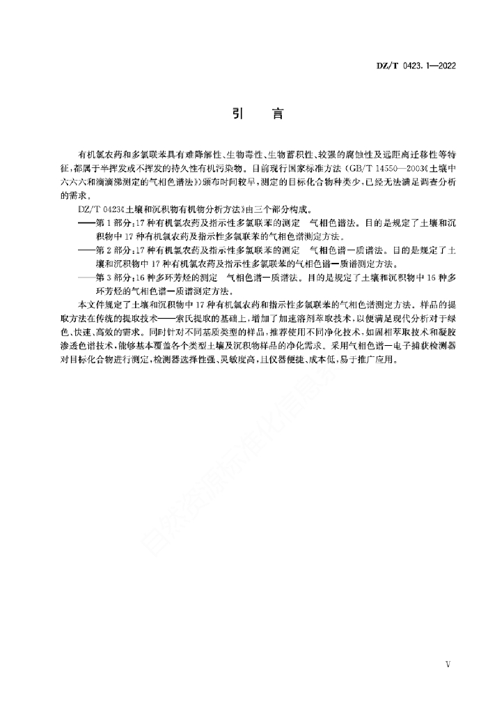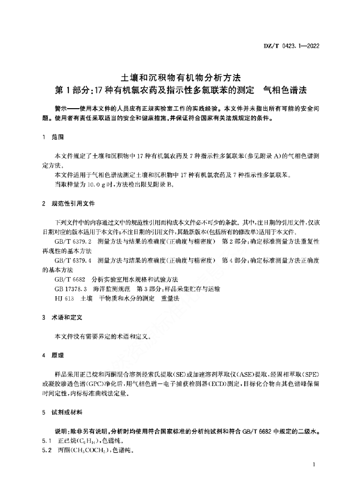 DZ/T 0423.1-2022 土壤和沉积物有机物分析方法 第1部分:17种有机氯农药及指示性多氯联苯的测定 气相色谱法