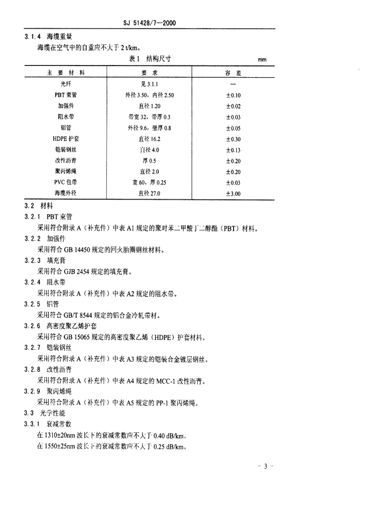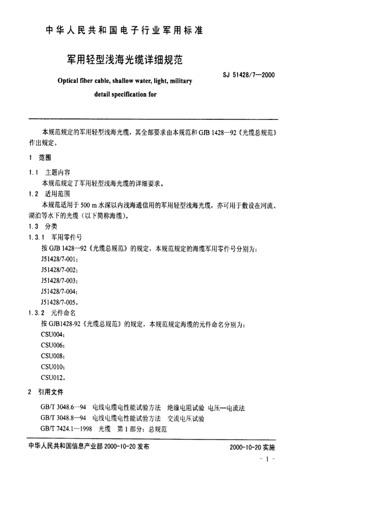 SJ 51428/7-2000 军用轻型浅海光缆详细规范