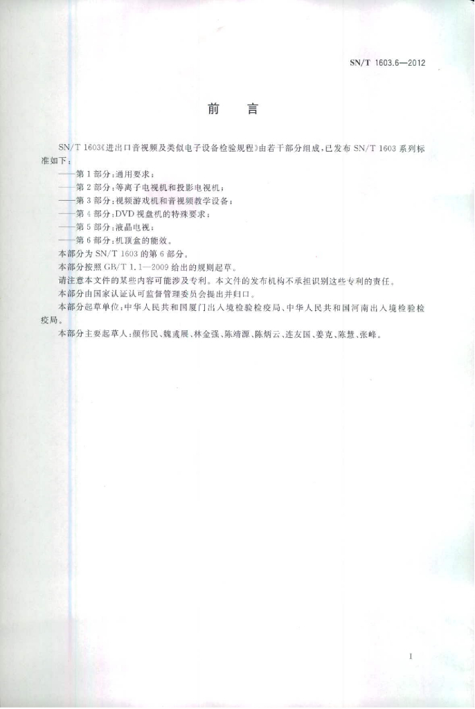 SN/T 1603.6-2012 进出口音视频及类似电子设备检验规程 第6部分:机顶盒的能效