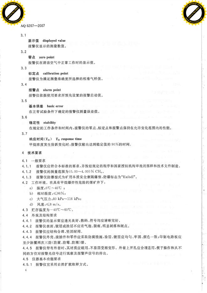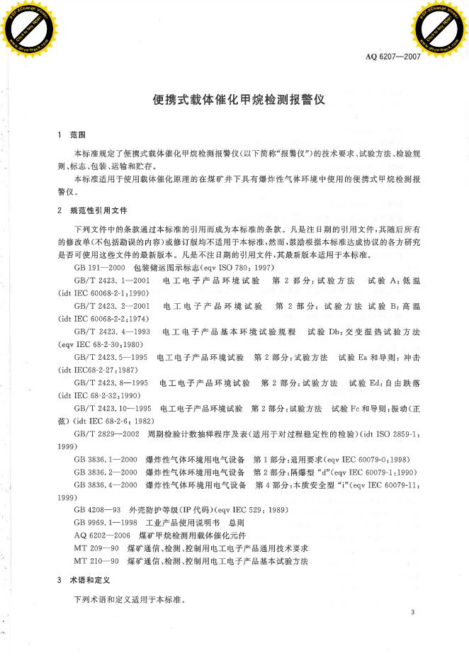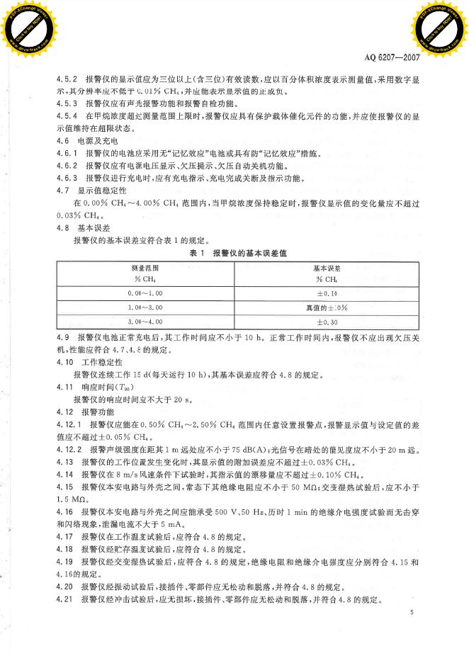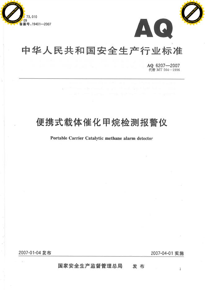 AQ/T 6207-2007 便携式载体催化甲烷检测报警仪