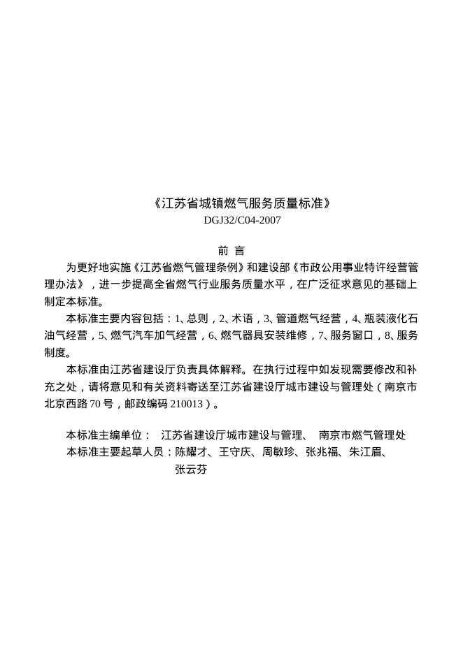 DGJ32/C 04-2007 江苏省城镇燃气服务质量标准