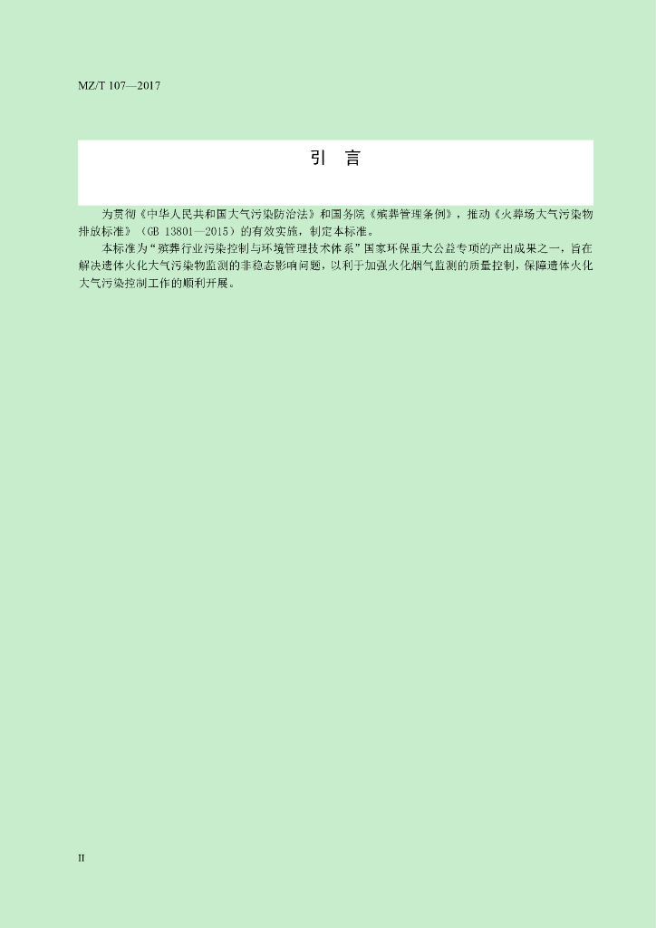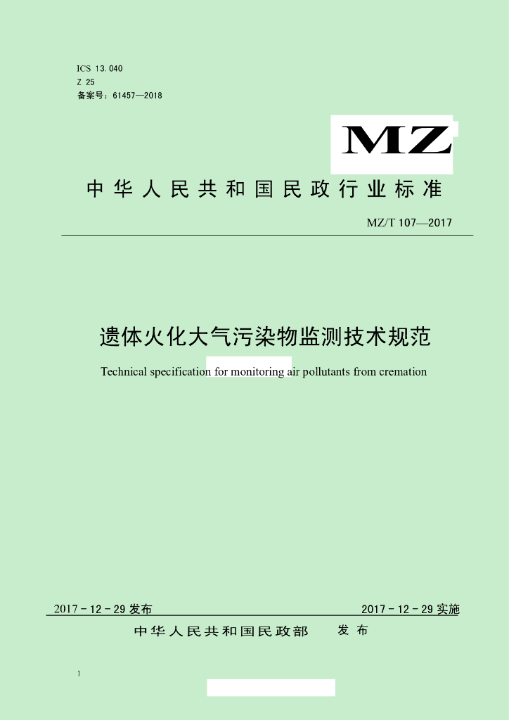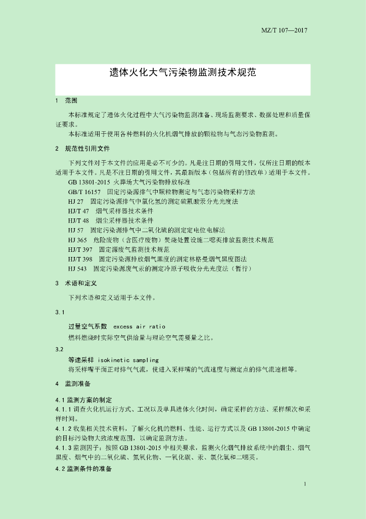 MZ/T 107-2017 遗体火化大气污染物监测技术规范