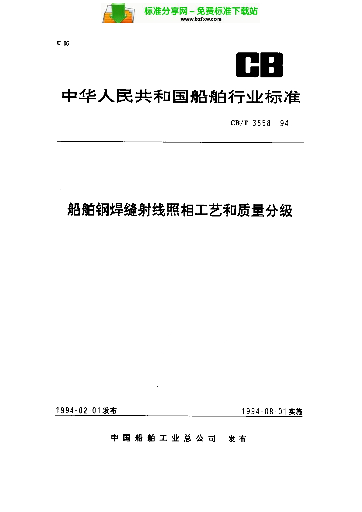 CB/T 3558-1994 船舶钢焊缝射线照相工艺和质量分级