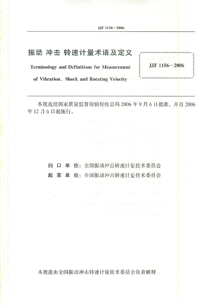 全国振动冲击转速计量技术委员会