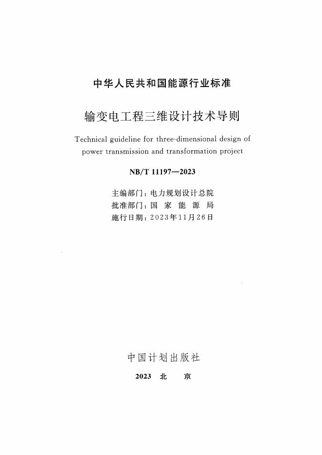 NB/T 11197-2023 输变电工程三维设计技术导则(附条文说明)