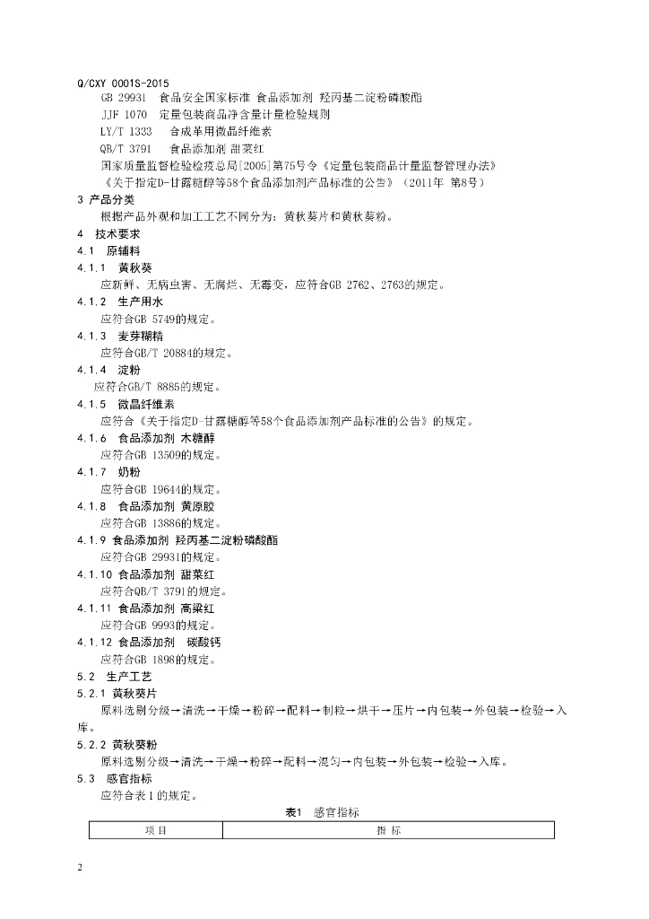Q/CXY 0001S-2015 山东创新源农业技术开发有限公司 黄秋葵片(粉)