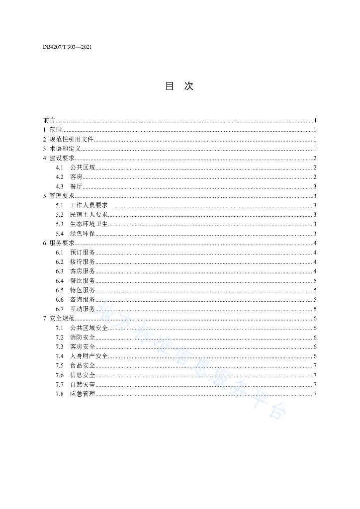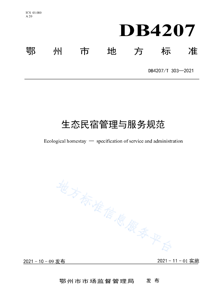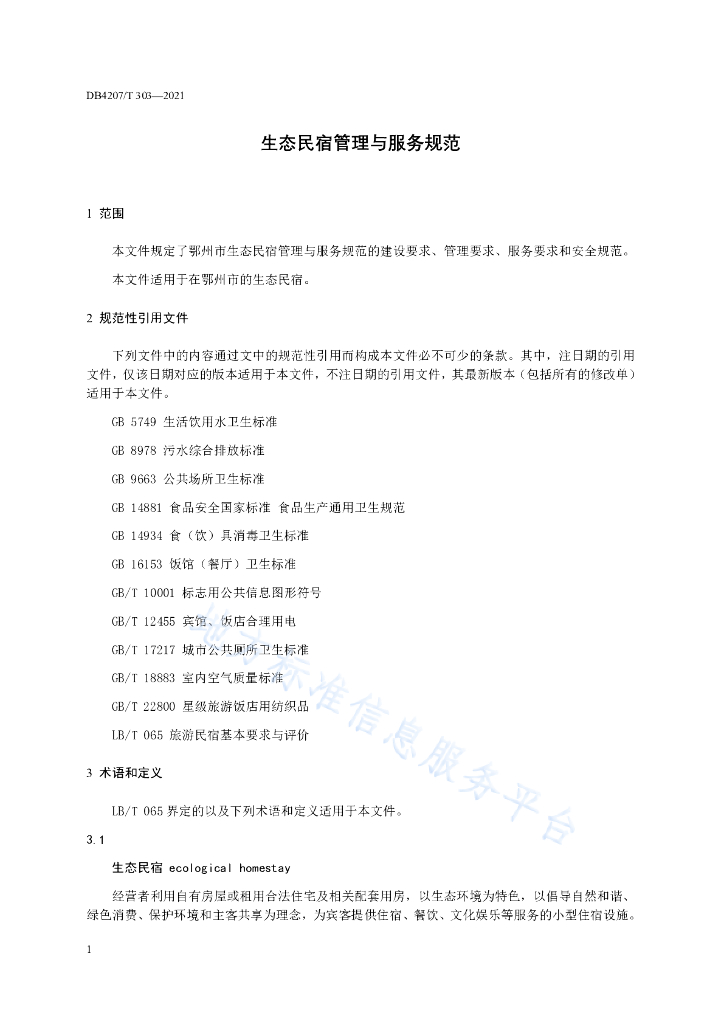 DB4207/T 303-2021 生态民宿管理与服务规范