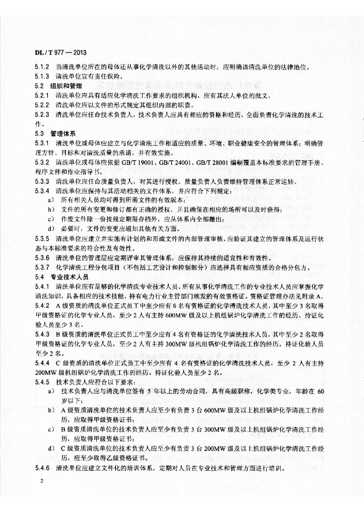 DL/T 977-2013 发电厂热力设备化学清洗单位管理规定