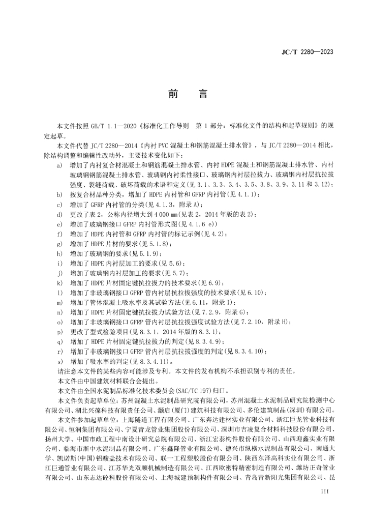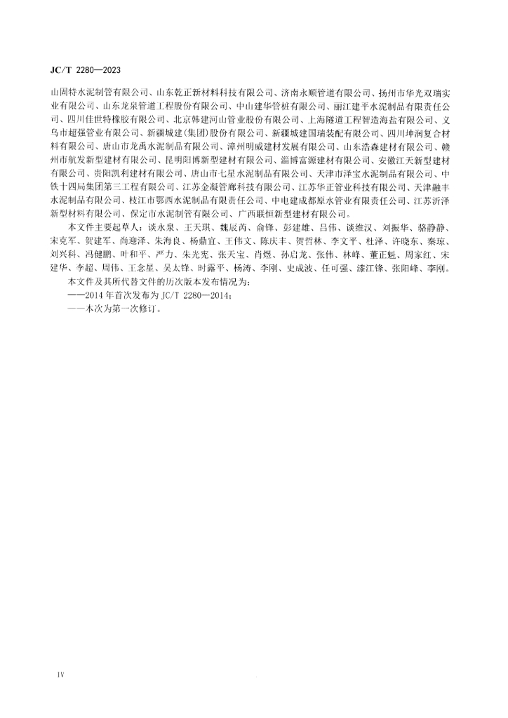 苏州混凝土水泥制品研究院有限公司,苏州混凝土水泥制品研究院检测中心有限公司、湖北兴葆科技有限责任公司、灏启(厦门)建筑科技有限公司、多伦建筑制品(深圳)有限公司、上海隧道工程有限公司、广东奔达建材实业有限公司、浙江巨龙管业科技有限公司、恒润集团有限公司、宁夏青龙管业集团股份有限公司、深圳市吉凌复合材料科技股份有限公司、扬州大学、中国市政工程中南设计研究总院有限公司、浙江宏泰构件股份有限公司、山西迎鑫实业有限公司、临海市浙中水泥制品有限公司、广东鑫隆管业有限公司、德兴市纵横水泥制品有限公司、南通大学、凯诺斯