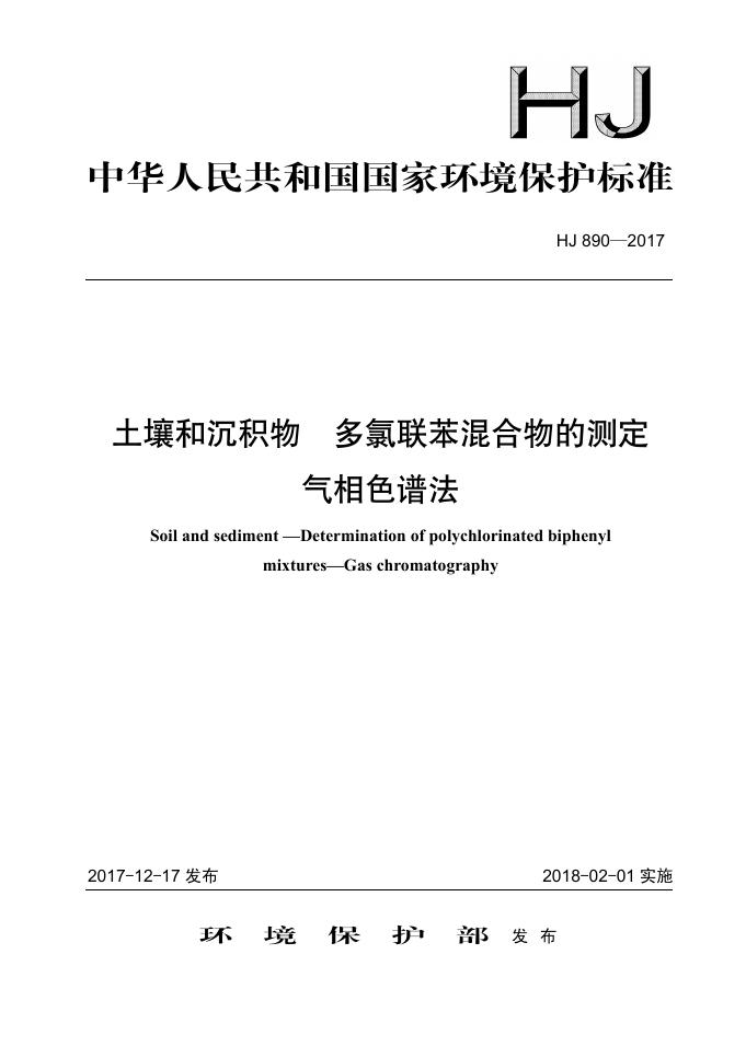 HJ 890-2017 土壤和沉积物 多氯联苯混合物的测定 气相色谱法