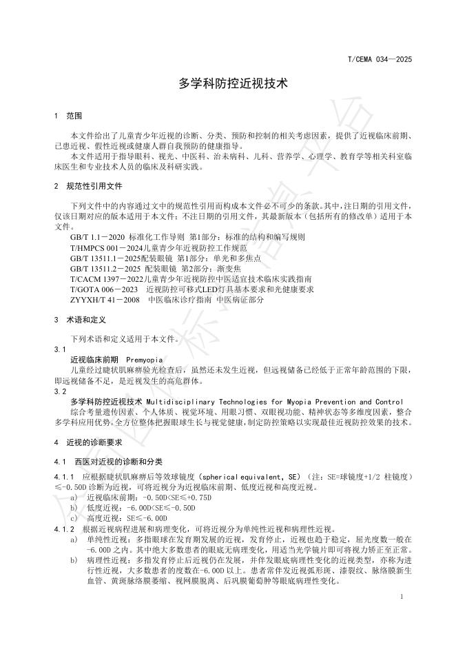 T/CEMA 034-2025 多学科防控近视技术及防控体系建设要求