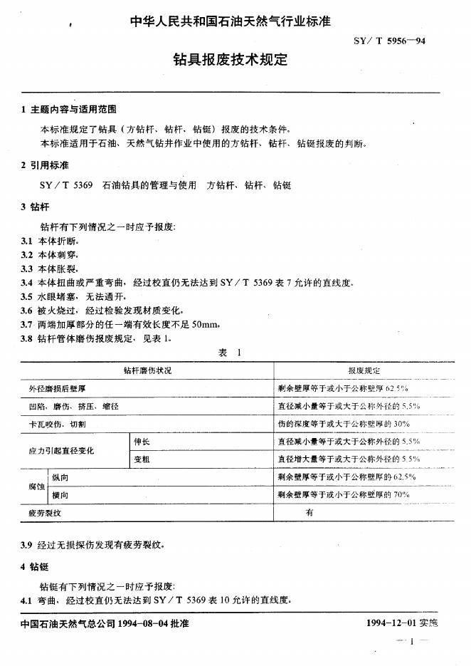 SY/T 5956-1994 钻具报废技术规定
