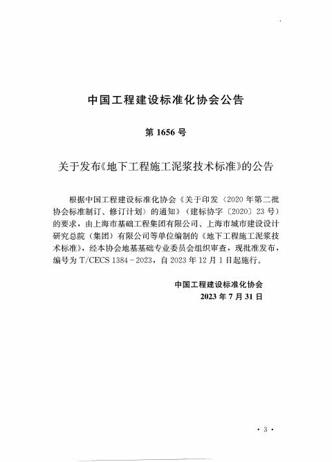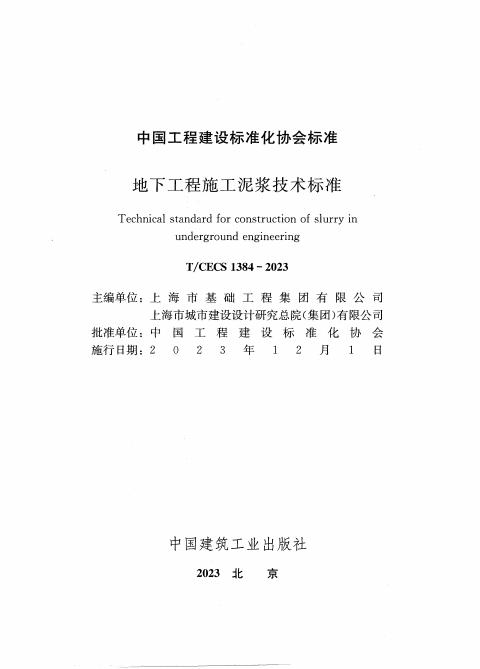 T/CECS 1384-2023 地下工程施工泥浆技术标准